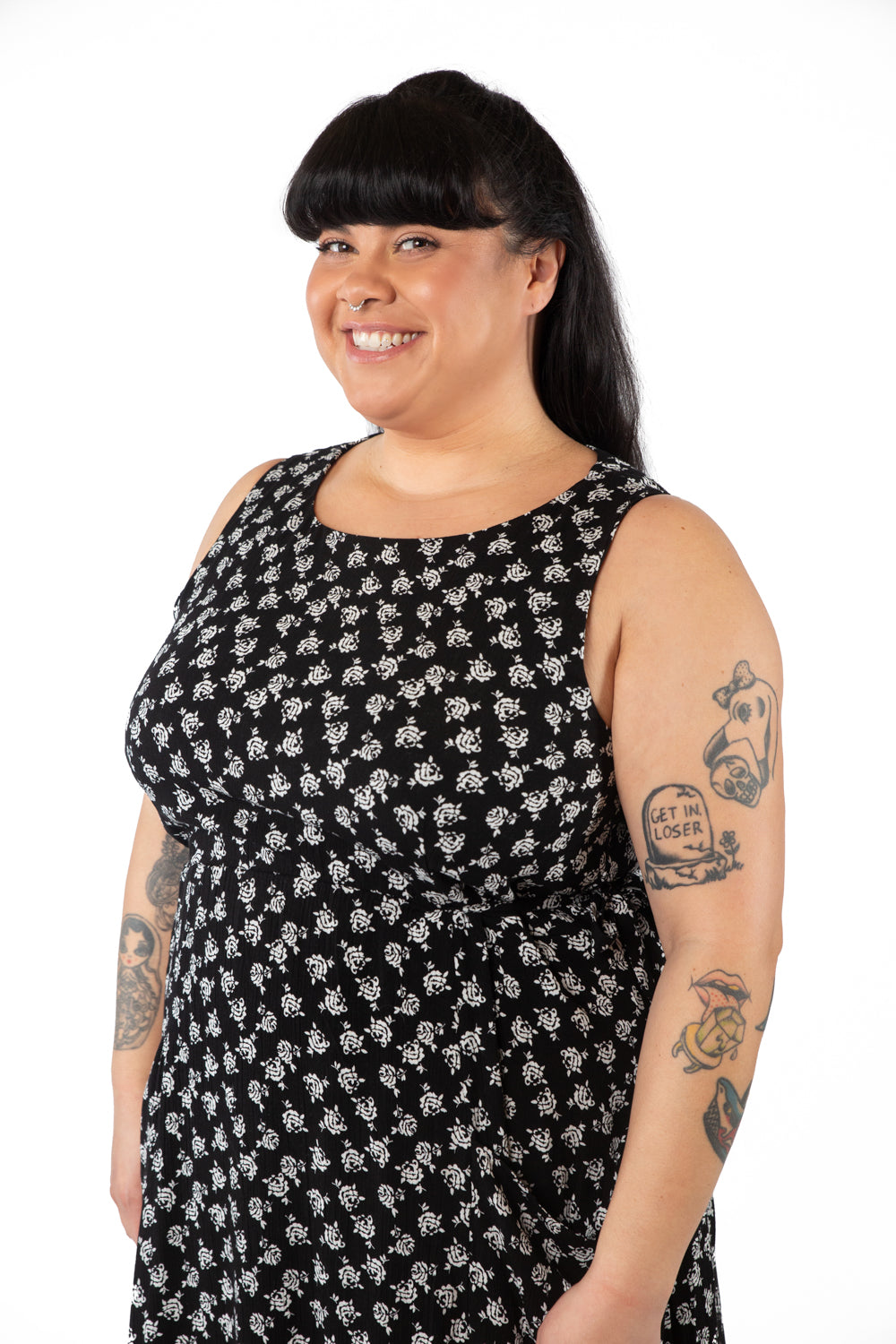 Rhiannon Dress in Black Rose Crepe