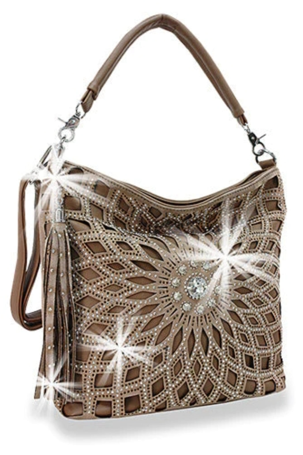 Rhinestone Design Layered Hobo in Taupe