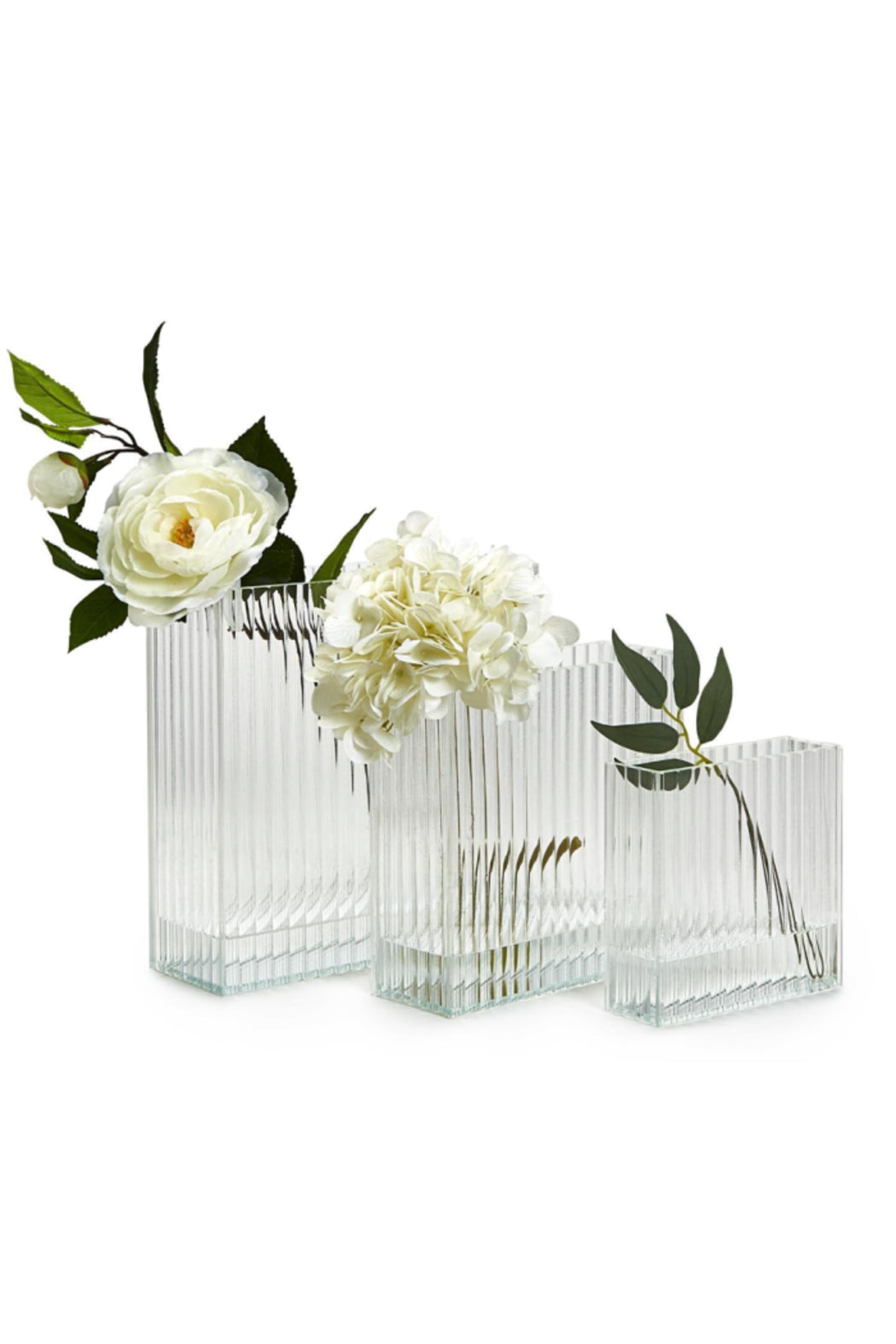 Keep flowers and greenery on a 360-degree display with these scalloped glass vases. Each vase is crafted with scalloped glass and has a narrow depth all design elements that helps make flower arranging easy.