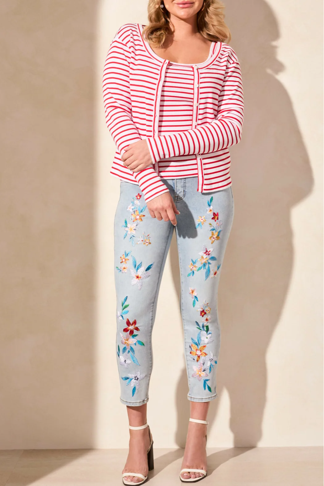 The Tribal Ribbed Tank Top in Bayberry Stripe is a chic and versatile wardrobe essential. Featuring a flattering ribbed texture, this tank top offers a comfortable, form-fitting silhouette. The vibrant bayberry stripe pattern adds a pop of color and a touch of modern style, making it easy to pair with your favorite jeans, skirts, or shorts.