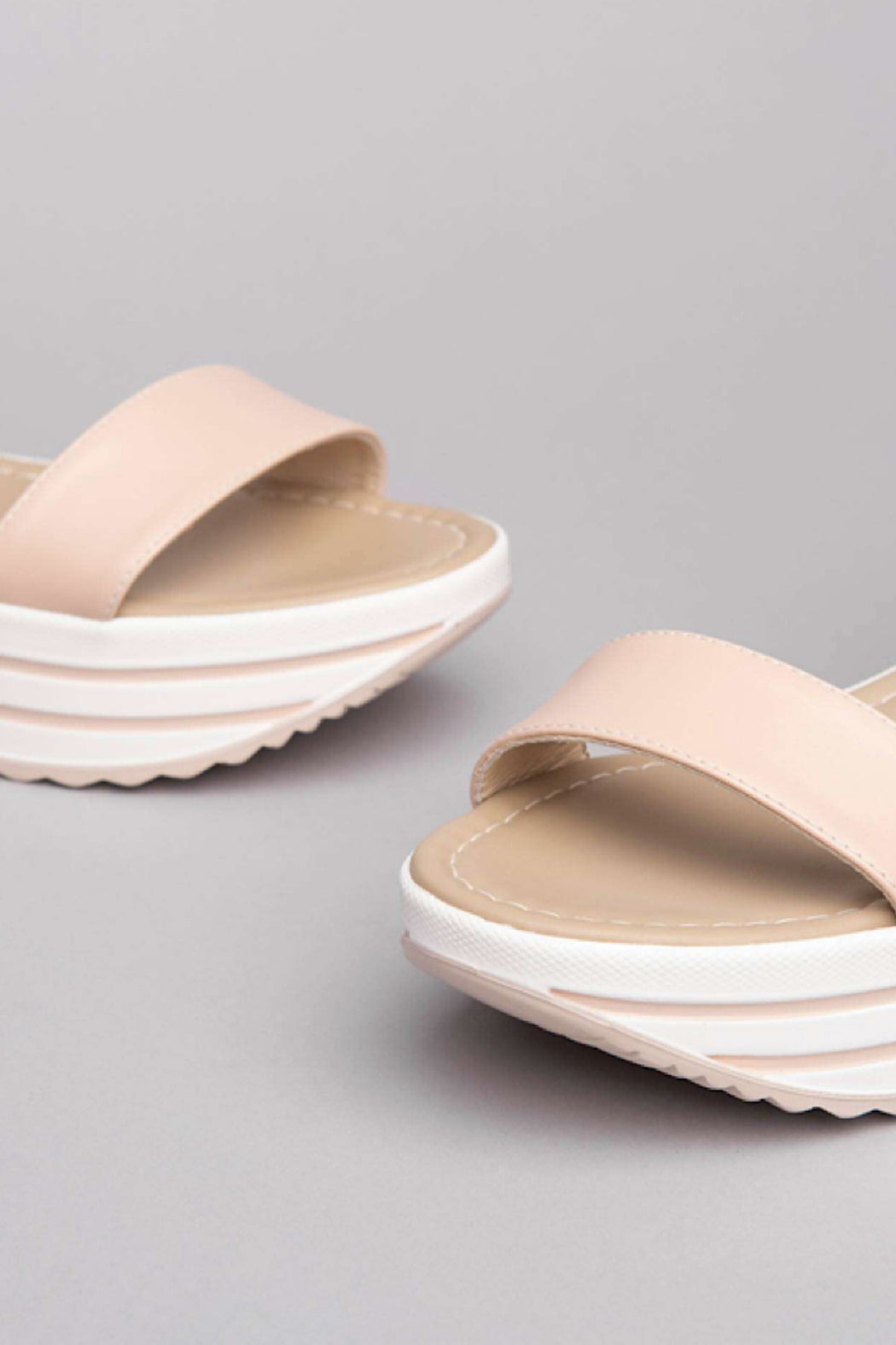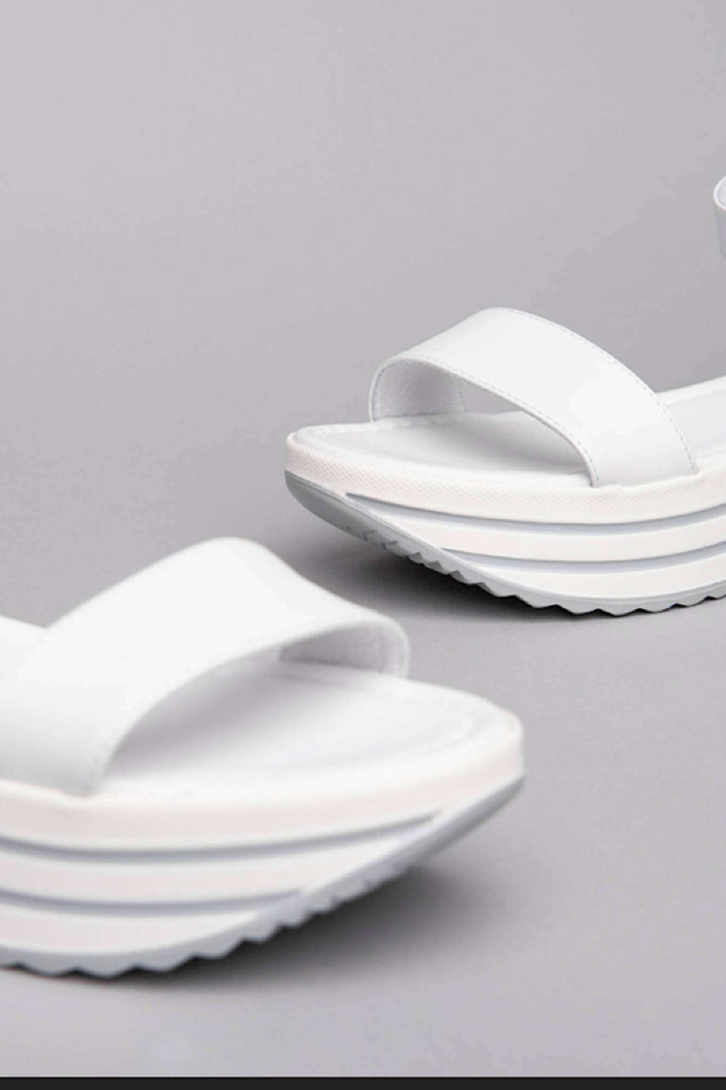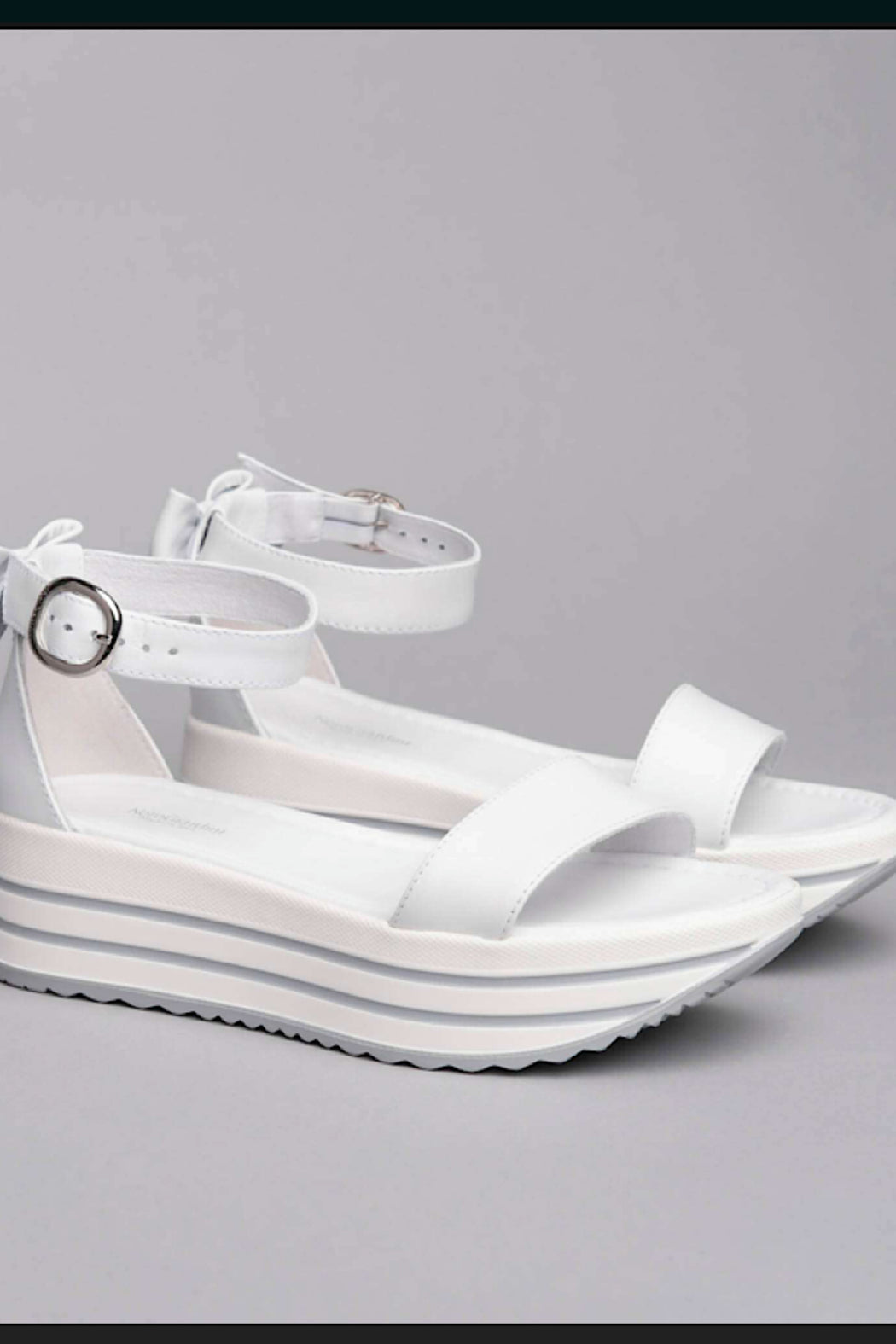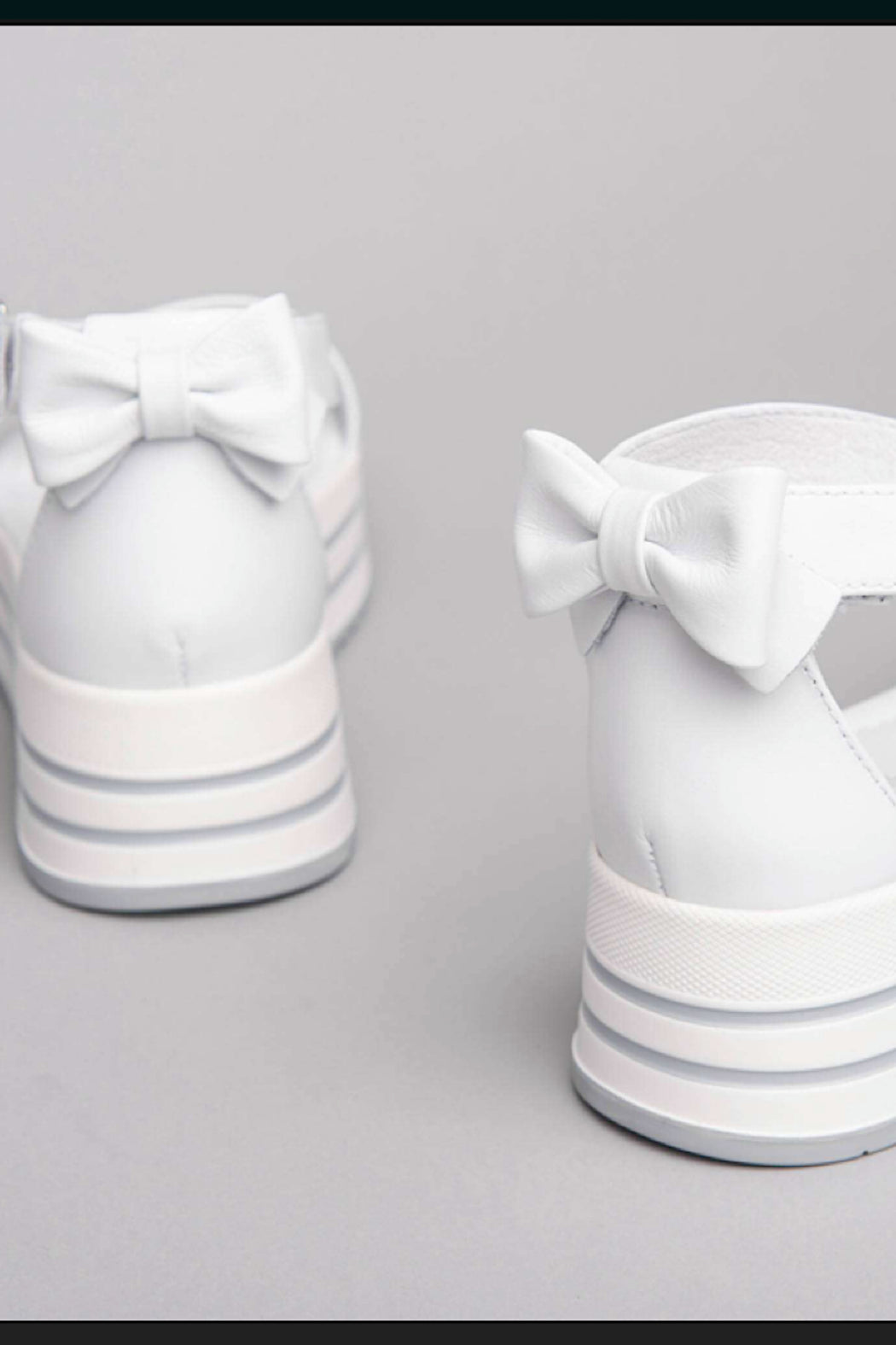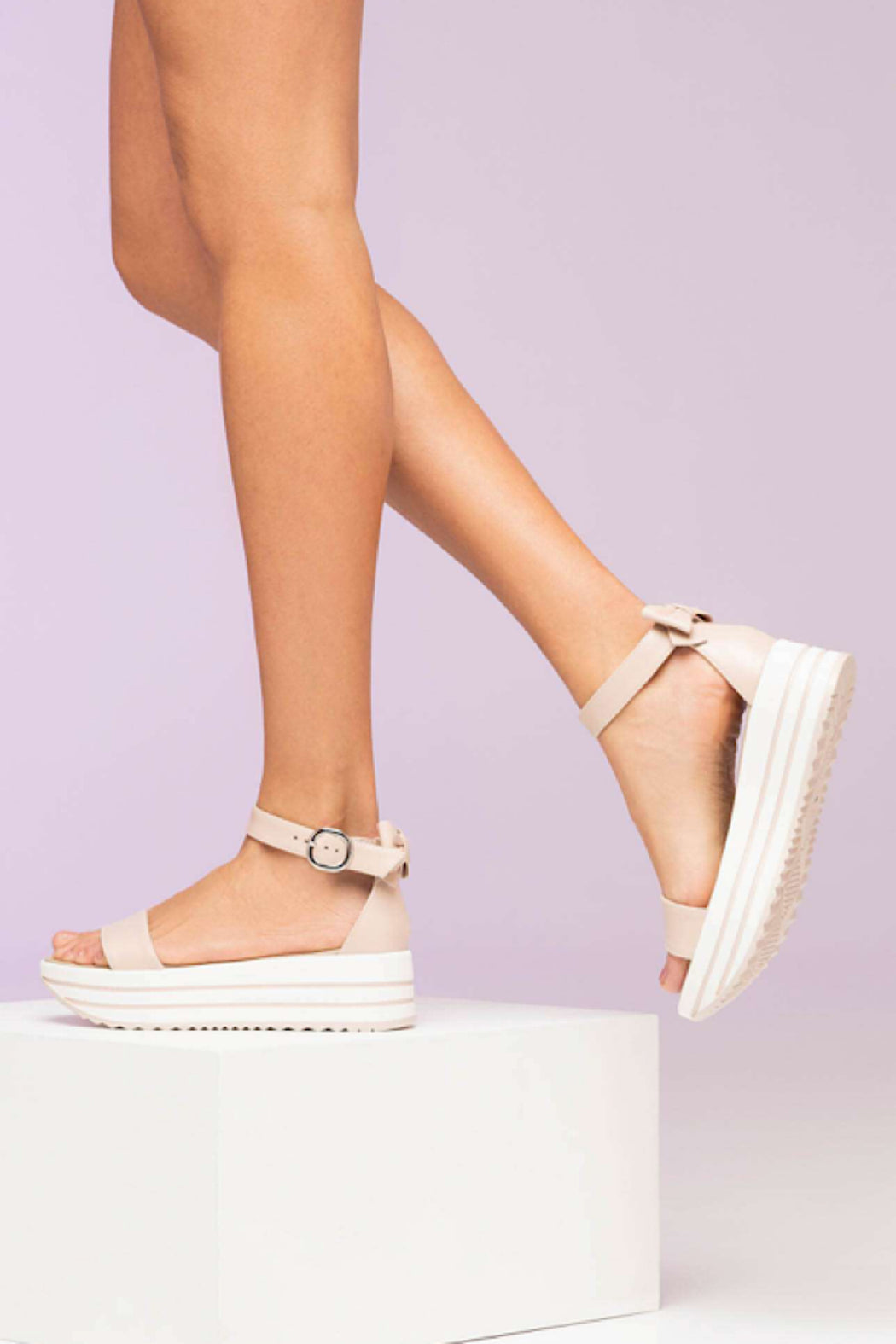 Leather sandals with ankle strap and leather bow at the back. Two-tone sole on 4.5 cm platform. Minimal design for a romantic fashion look.