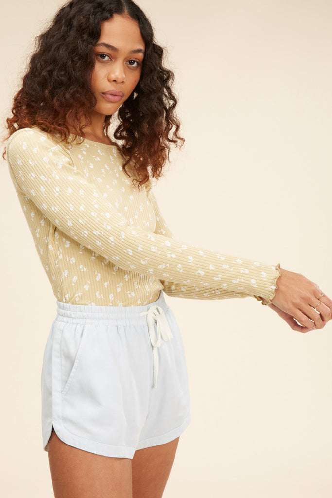 This short takes on retro-inspired lines with a scalloped hem, while a well-worn wash seals in lived-in lines. Throw on your favorite tennies and get ready to take on the day.