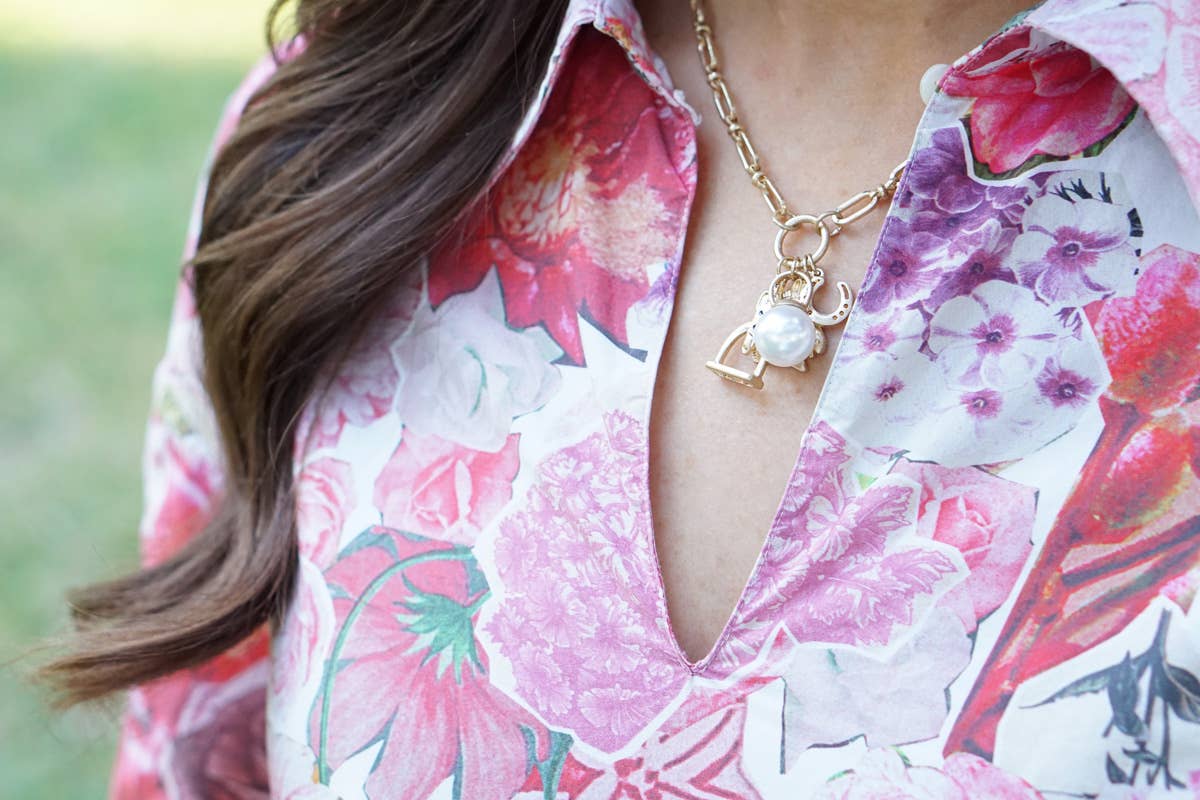Celebrate equestrian elegance with the Rosalind Equestrian Charm Necklace. Featuring shiny gold horse-inspired charms, this piece brings a playful yet refined look to your jewelry collection.