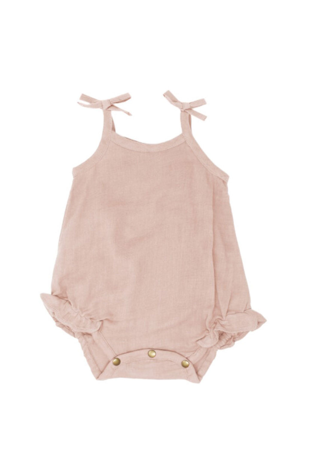 Soft elastic around the thighs for baby's complete comfort, with muslin ruffle detail for added charm and cuteness