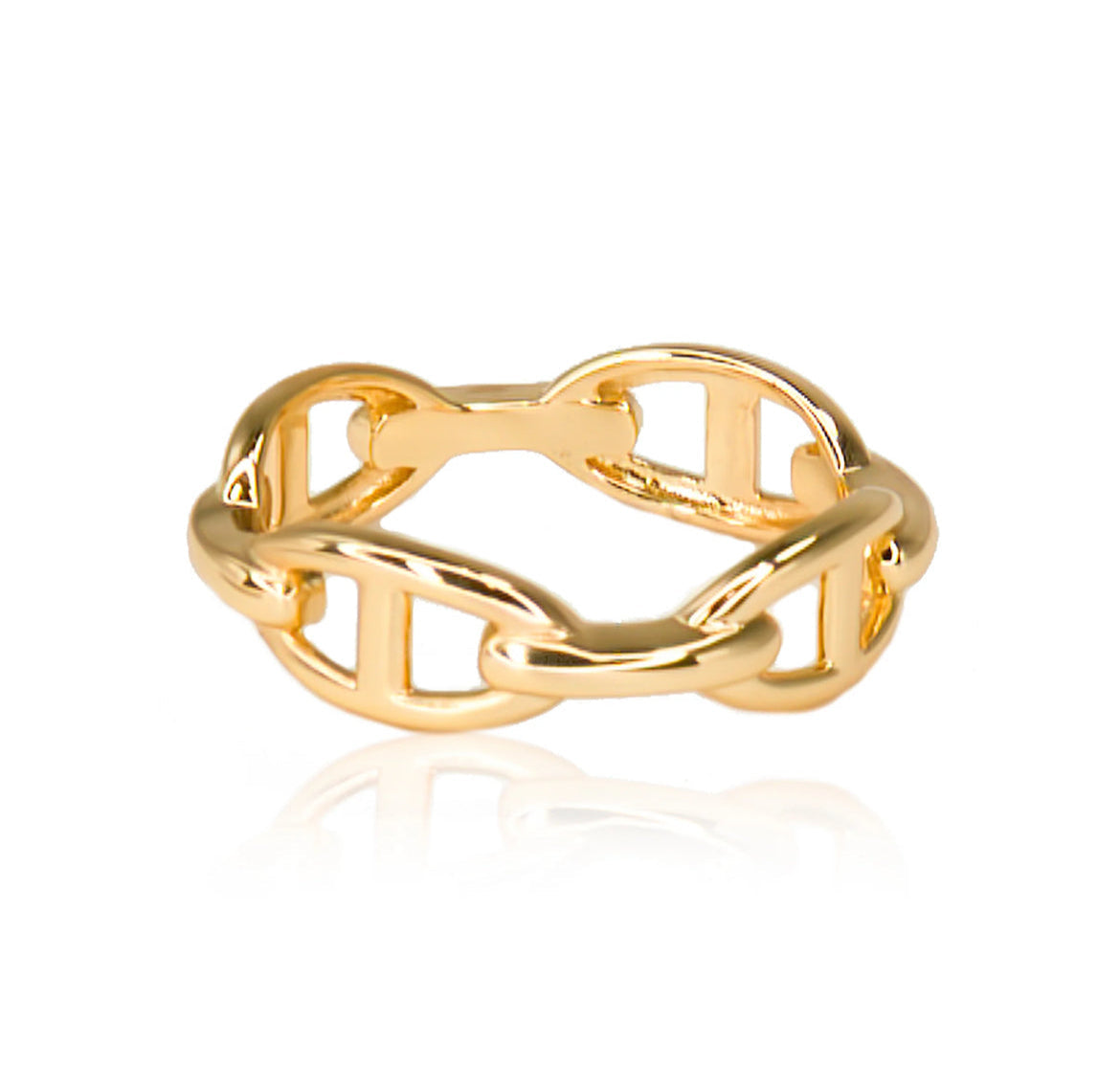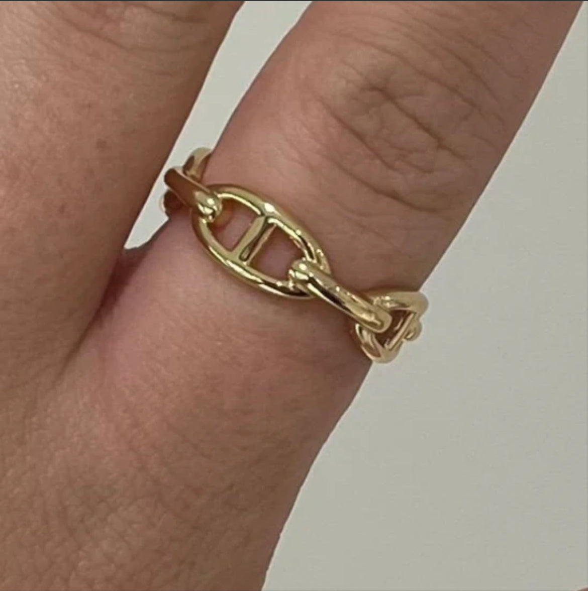 Want to add a touch of edgy sophistication to your style? Look no further than the Rosie Link Ring. This chain link ring is the perfect statement piece to elevate any look. Crafted with quality materials, it's a must-have for anyone looking to make a fashion-forward statement.