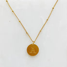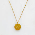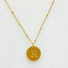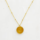 Gold plated coin initial necklace. Absolutely adorable for engraved charm with dainty chain that has tiny balls in between. Has great quality and details.