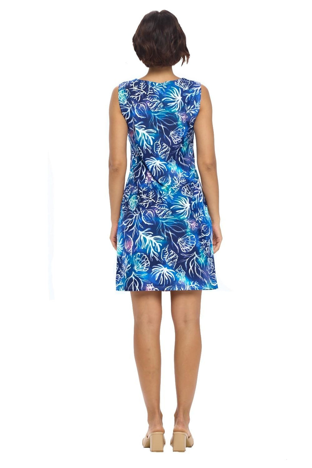 Sleeveless Shift Dress, Soft and Stretchy Fabric, Split Neck And Knee Length