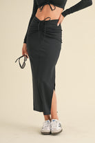 Looking for a ruched maxi skirt, high-slit skirt, or chic long skirt? The Ruched Side Slit Maxi Skirt is the perfect choice for an effortlessly stylish wardrobe. Shop now at Evercado!