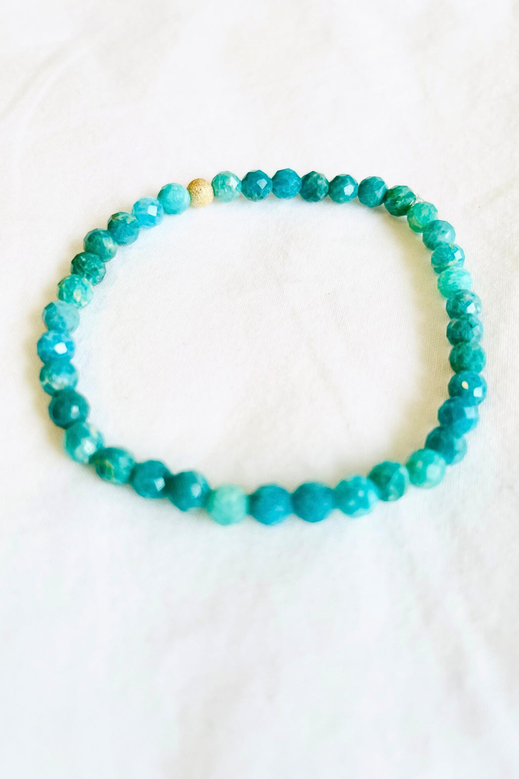 4MM faceted rare Russian Amazonite gemstones 7" stretch bracelet.