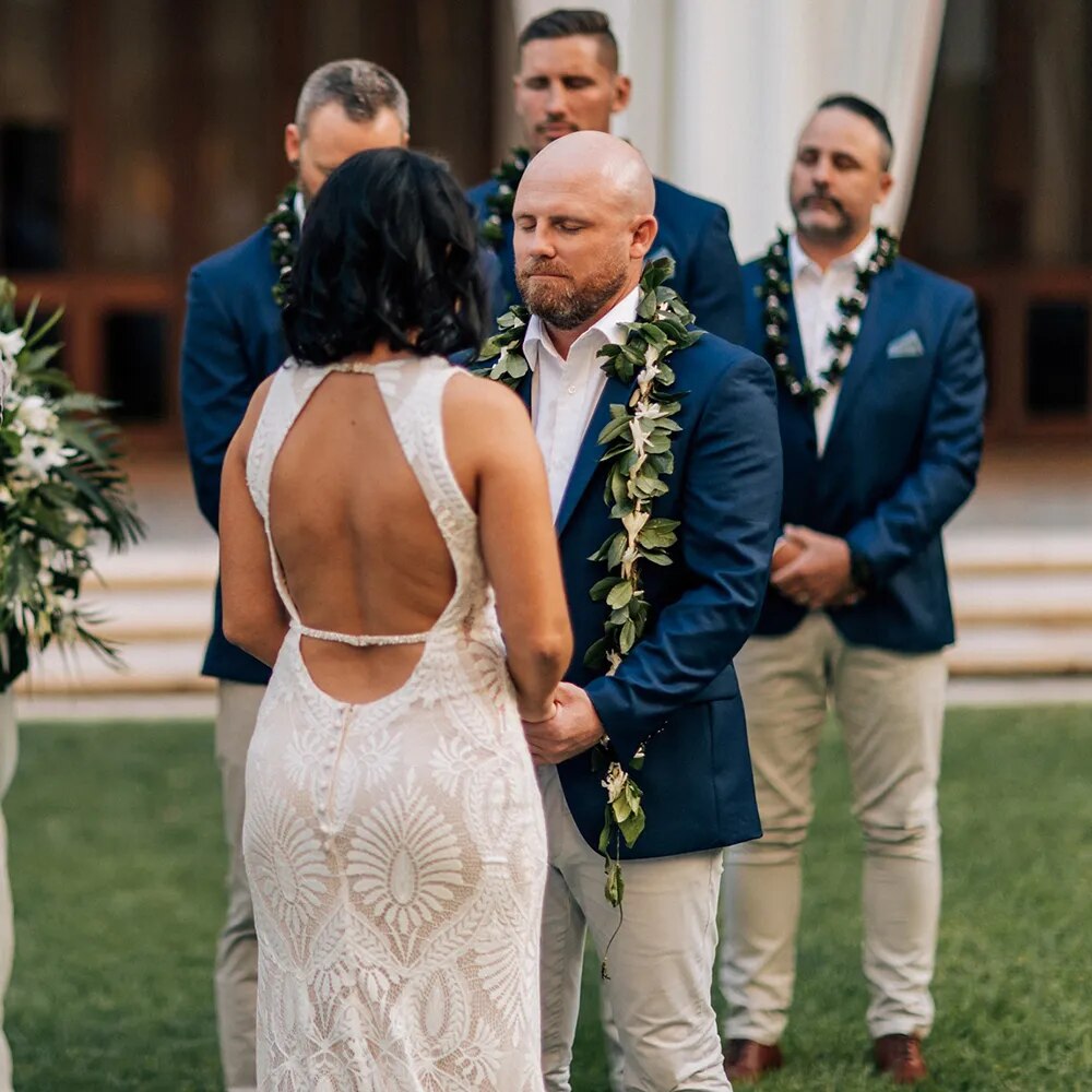 Achieve a timeless, romantic look with this gorgeous Boho Open Back Halter Lace Sleeveless Low Cut Buttons Mermaid Trumpet Bridal Gown. Crafted from elegant lace fabric, the dress features a seductive open back, halter neckline, delicate button detail and trumpet bottom, making it an ideal choice for your special day. Showcase your femininity and grace with this exquisite, luxurious gown.