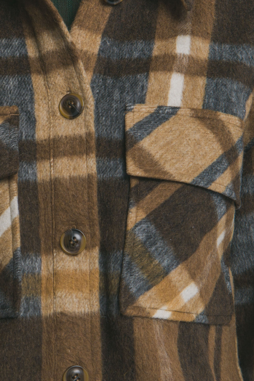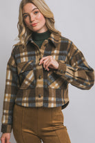 Soft Brushed Multi Colored Plaid Short Button up Collared Shacket