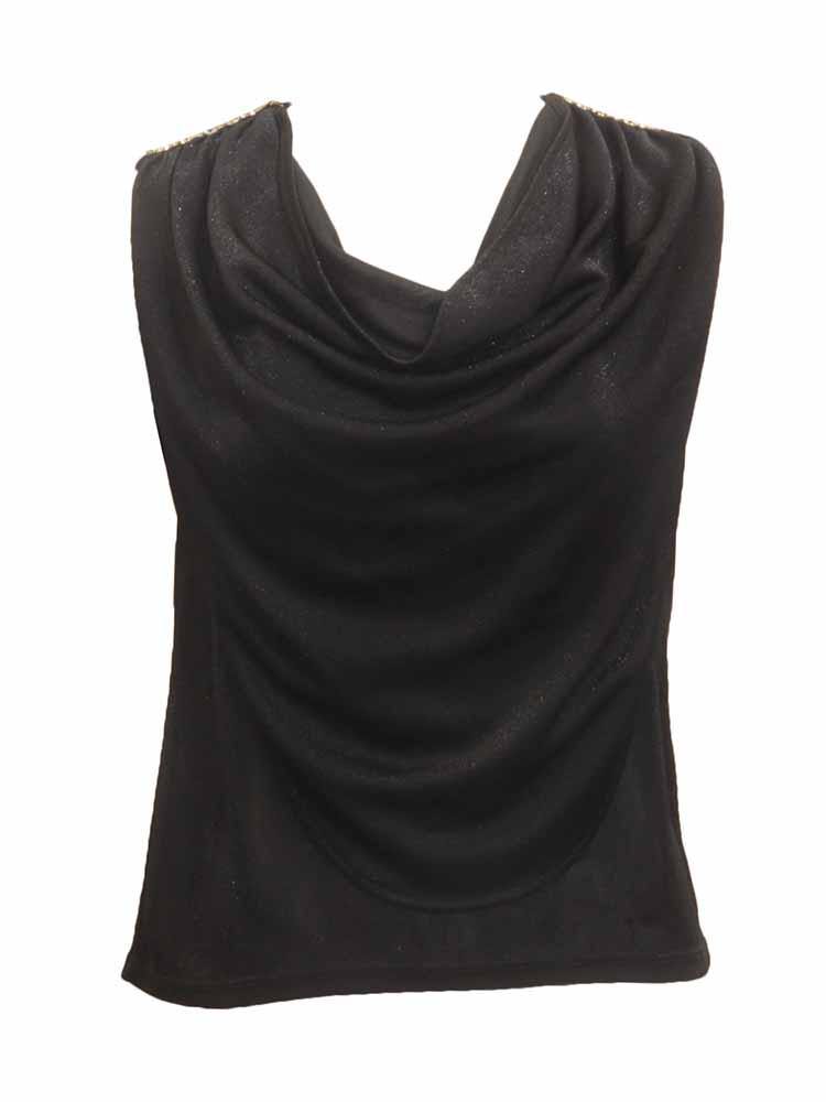 Glitter fabric top with front overlay and rhinestone trimming on the shoulder
