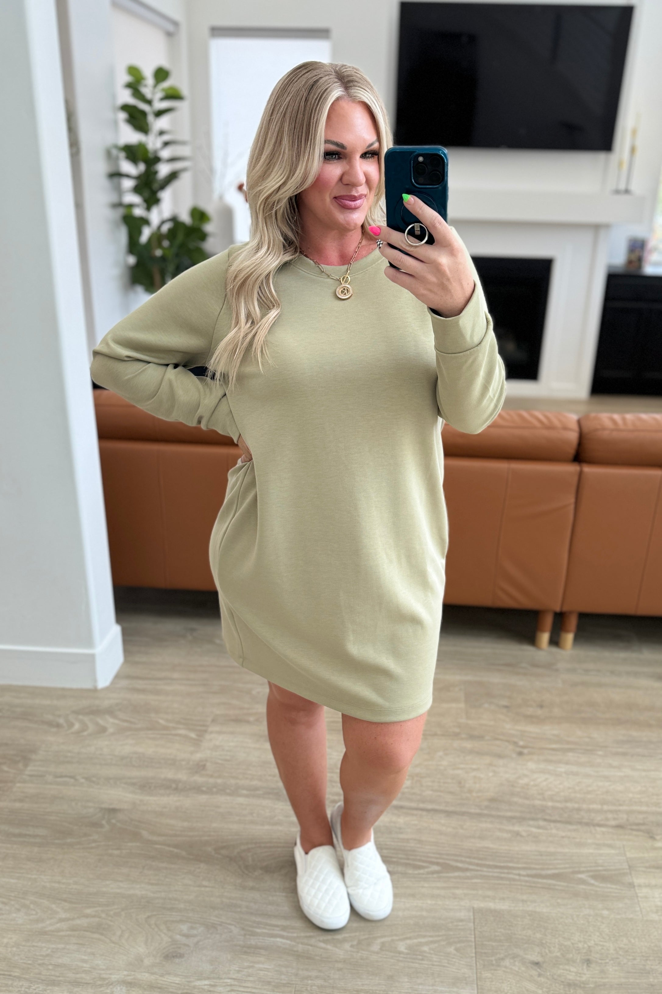 Made with scuba modal for ultimate comfort and style, it features a round neckline, long sleeves with a banded cuff, and a back pleat for a flattering fit. Pair with tights for a classy look or with leggings for a more casual look!