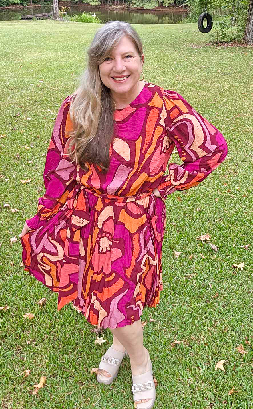 Fall in love with our stunning Geo printed dress! The boat neck and long sleeves add a touch of sophistication, while the pleated mini length and included belt create a flattering silhouette. Made with a comfortable blend of rayon and nylon, this dress is perfect for any occasion. Total length measures 41".