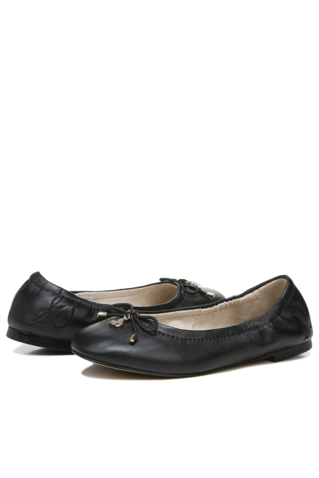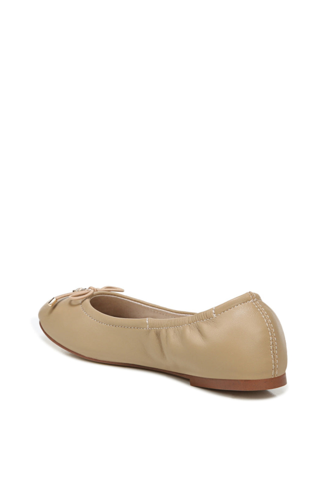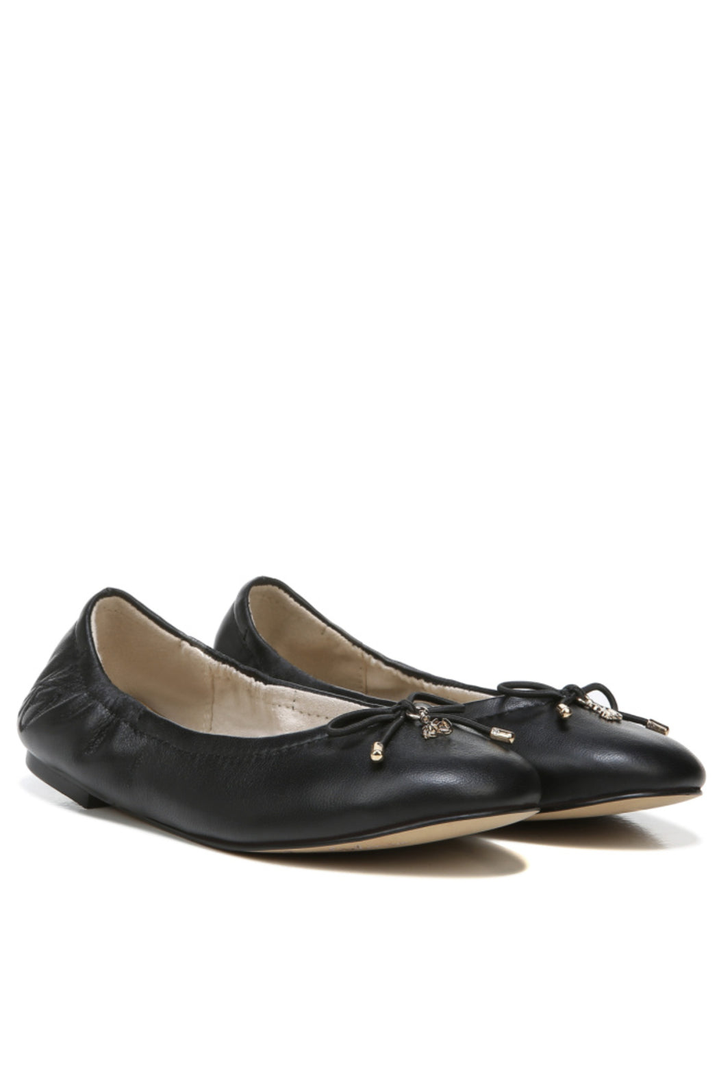 Hi Felicia! Every girl needs her own pair of ballet flats to make her feel like a princess. Felicia's comes with a ruched heel and cute bow, in various luscious materials.