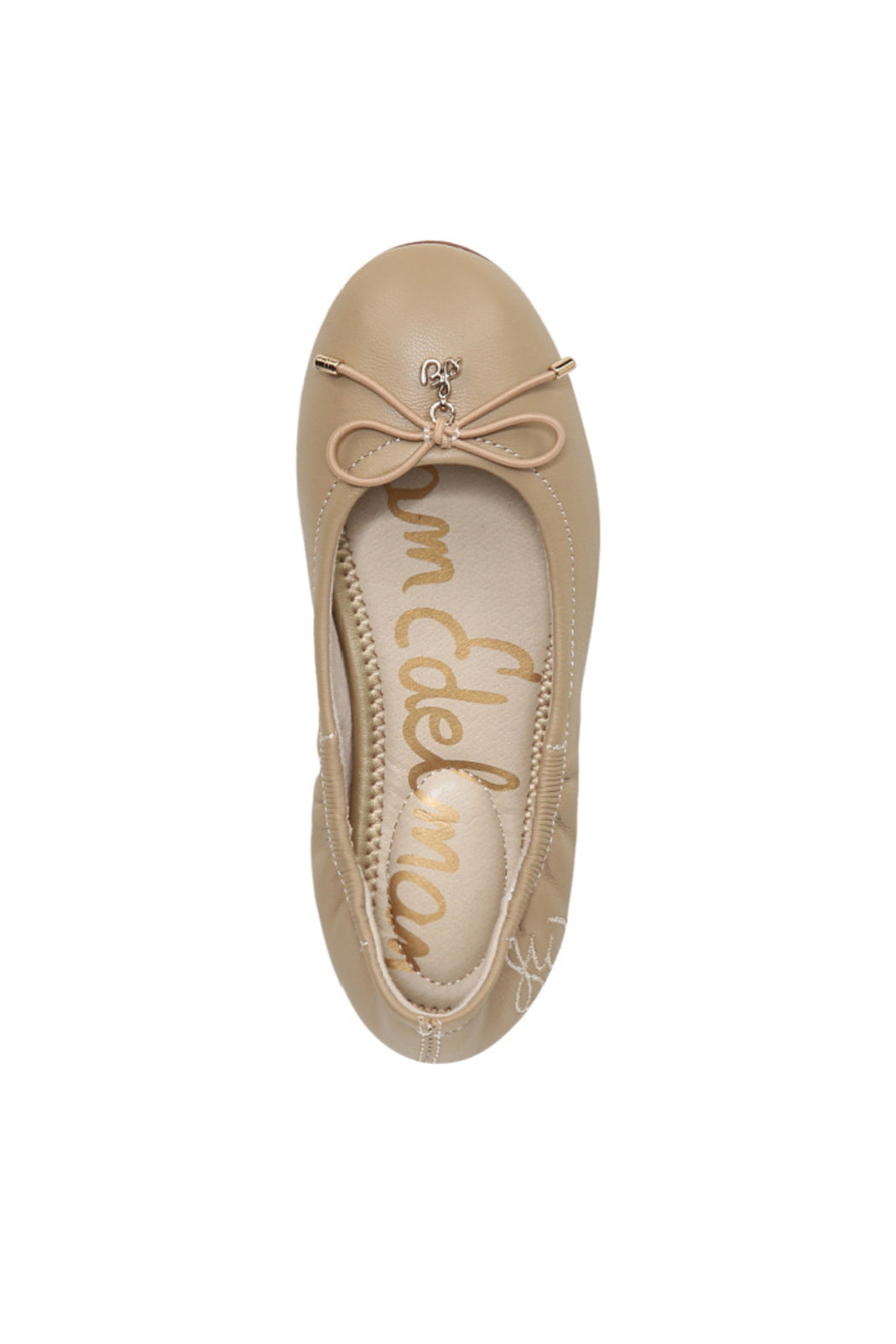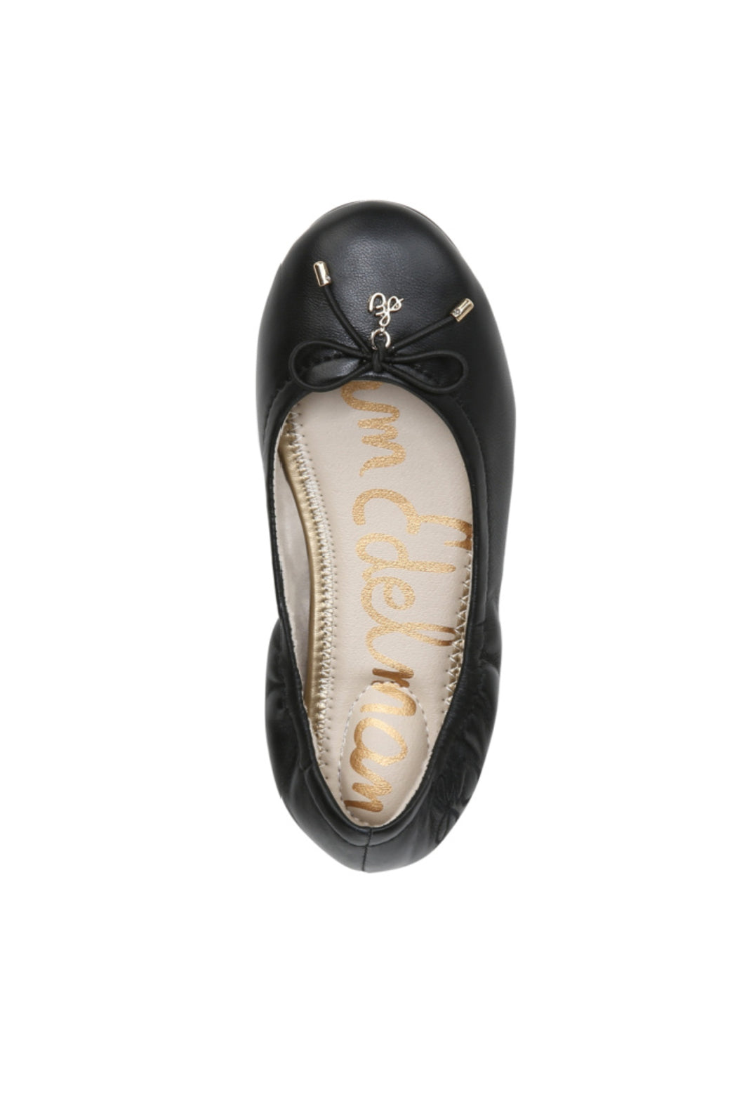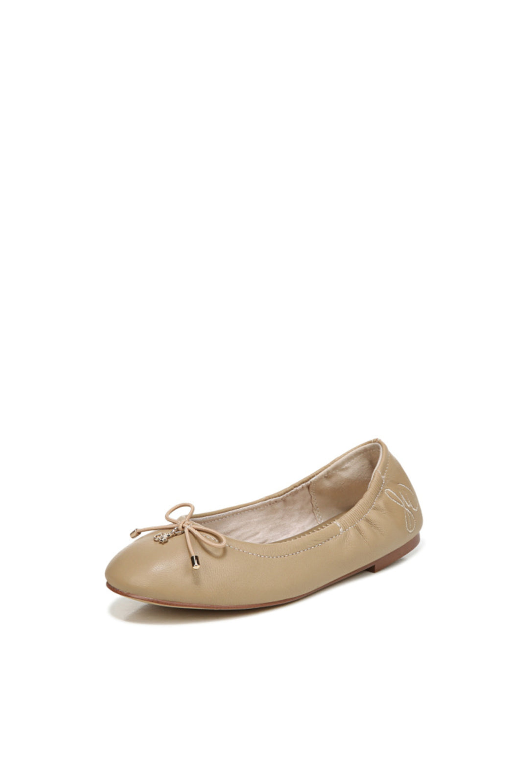 Hi Felicia! Every girl needs her own pair of ballet flats to make her feel like a princess. Felicia's comes with a ruched heel and cute bow, in various luscious materials.