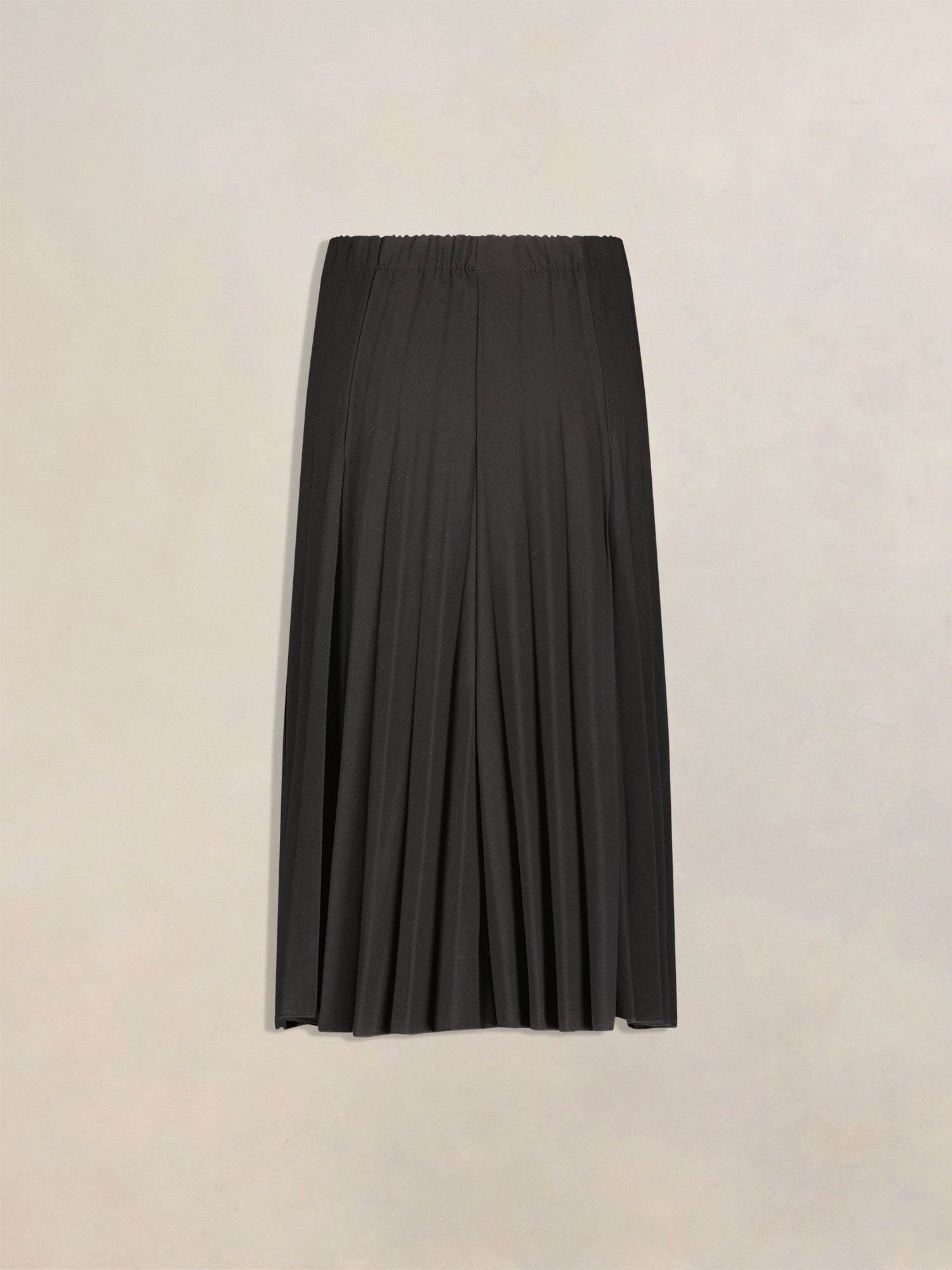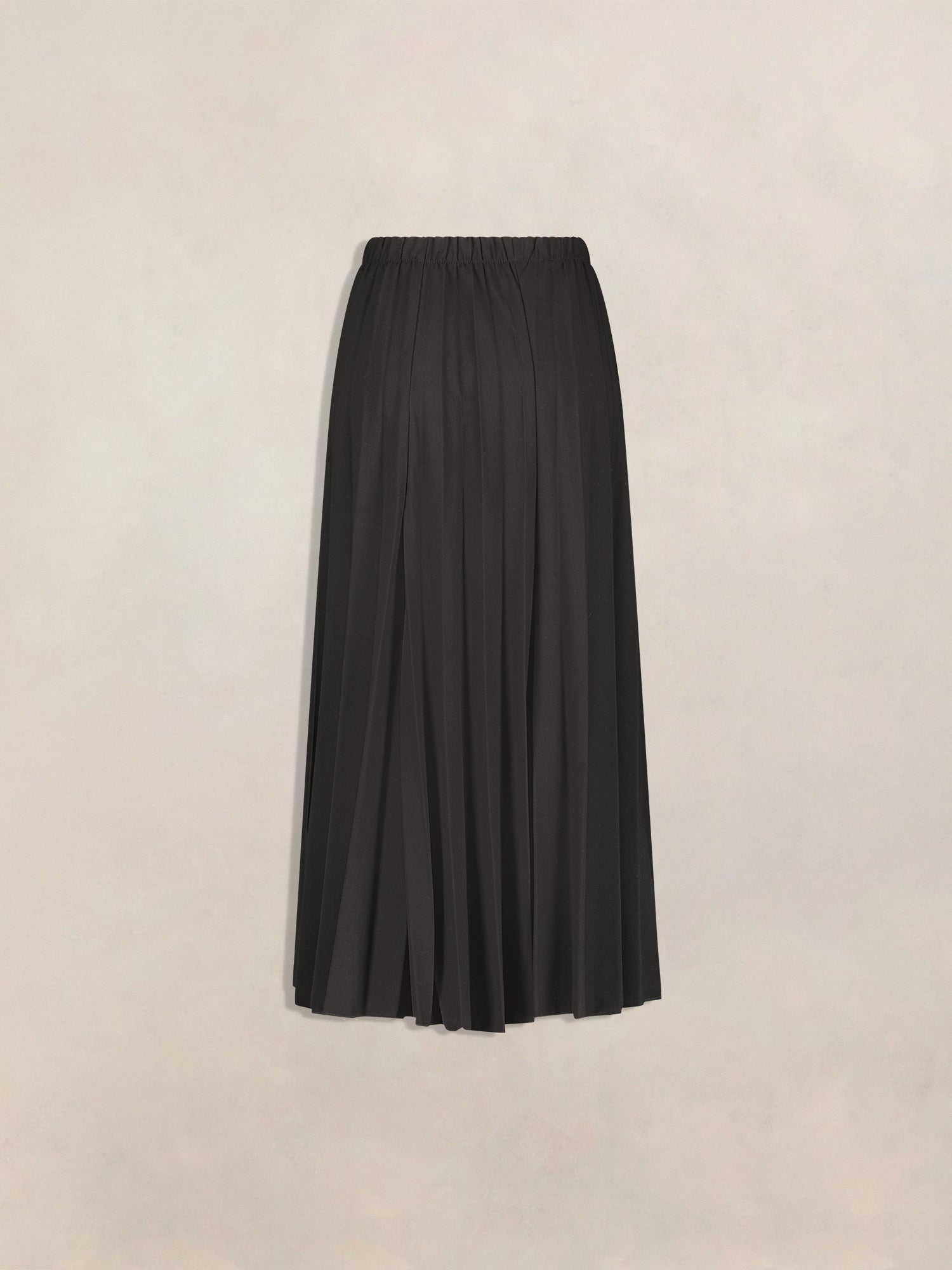 •LOOK: Sam Fashion designed a fabulous skirt in a pull on style with an elastic waistband. The suiting fabric is smooth, non-stretch. There are three lengths available: knee, midi and maxi. All-around pleats add to the visual appeal and graceful movement. Wear this with a fave sweater, a trendy cropped style sweater or a new cardi you have your eye on but didn't have anything to wear it with. Problem solved! This skirt is a workhorse staple in your wardrobe. It is both versatile and practical. Each length gives you a different look so don't hesitate to try them all. Work, casual gatherings with friends or special events. This skirt will look new and exciting every time. Available in black or olive.