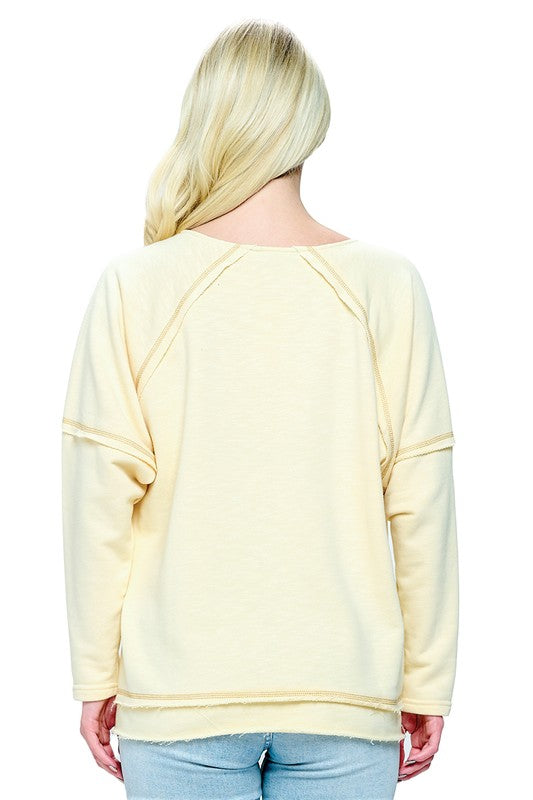 - Fall Winter Pullover - Comfortable Effortless Look - Casual Style - Loose Fit - Patchwork - Raw Edge Design - Exposed Contrast Stitch - 60% Cotton 40% Polyester - Made in Nepal Measurements : Chest- S/M 50", L/XL 54" Length- S/M 25.5", L/XL 26.5" Hem- S/M 52", L/XL 56"