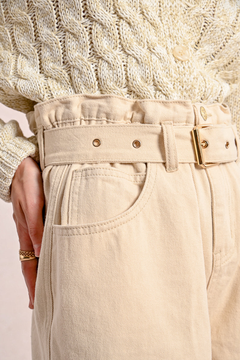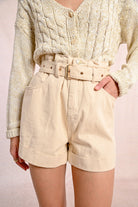 The Sand Dune Belted shorts are the perfect blend of casual comfort and style. The light, sandy color and the structured belt give off a chic, natural vibe perfect for a warm day. Crafted from a cotton denim fabric, these high waisted shorts feature a flattering pleated front and a wide, cuffed hem for a polished finish. Pair them with your favorite knit sweater or a tucked-in blouse for an easy, elevated look.