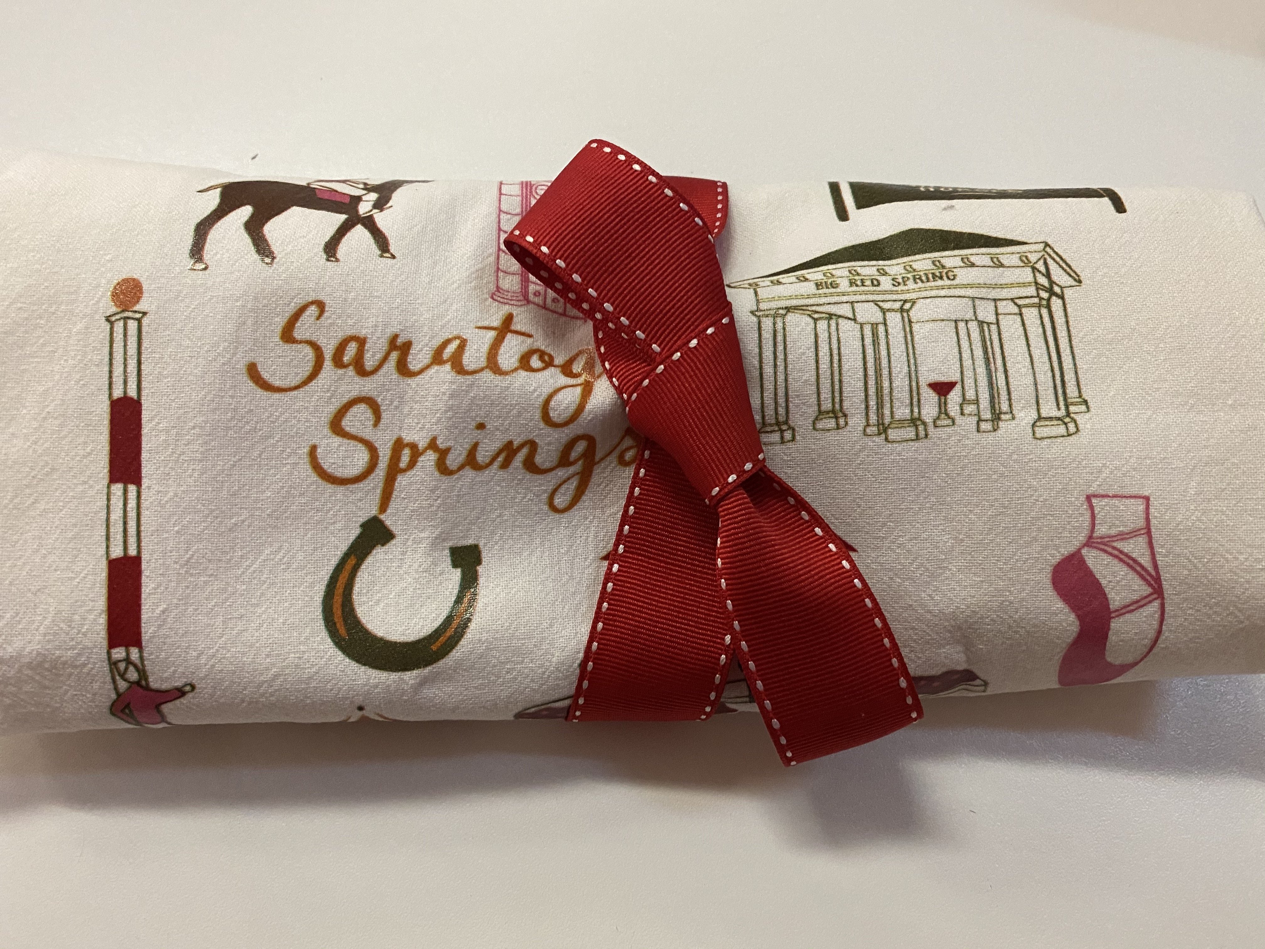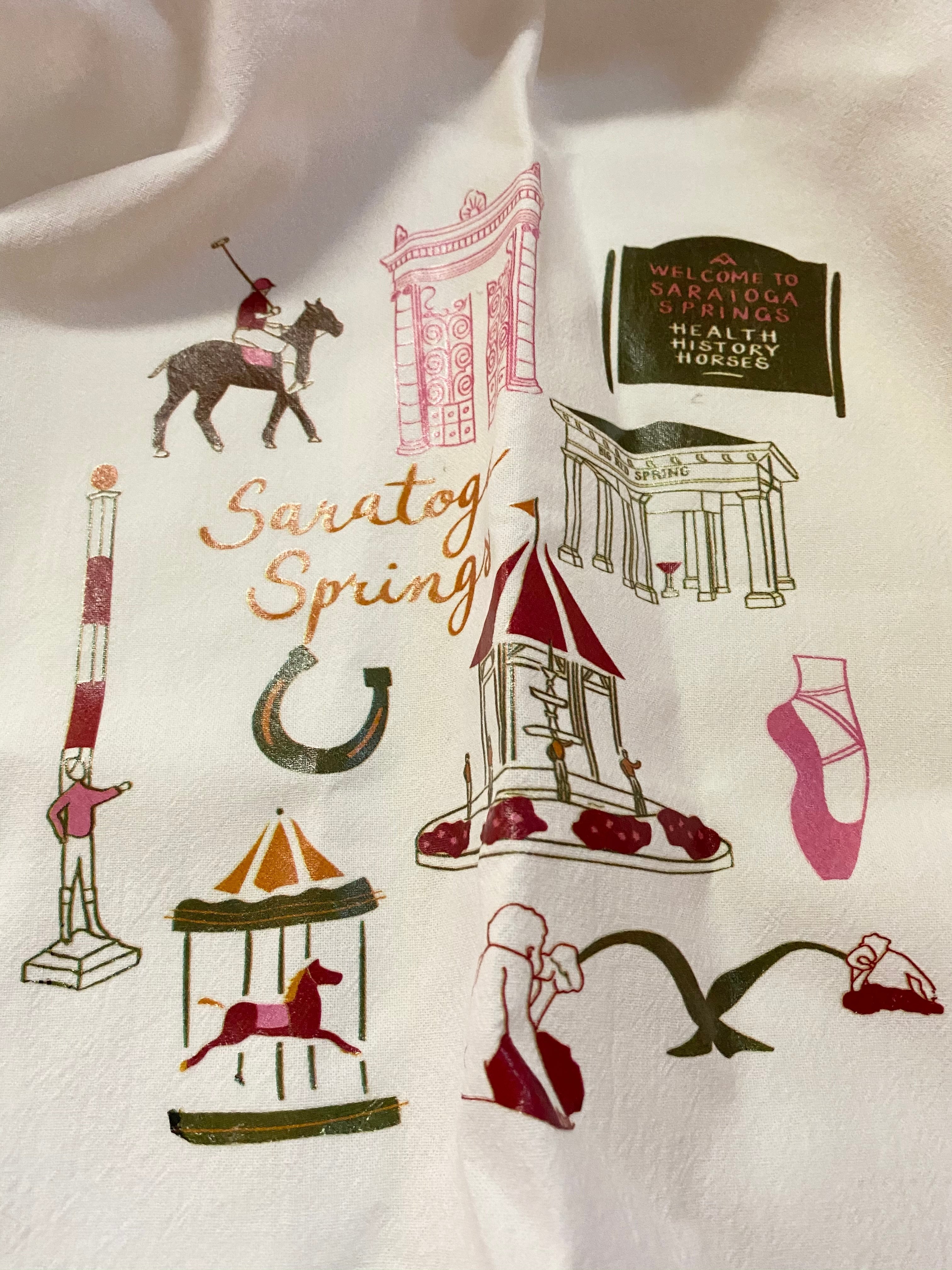 Saratoga landmark tea towel makes the perfect gift for any Saratoga Lover. Printed in Saratoga by us.
