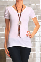SB-119 Leather Strap necklace w/ Stone Pendant