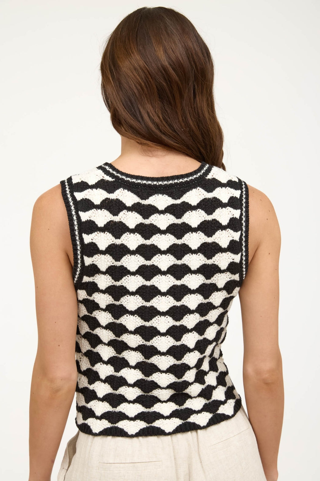 The Scallop Sweater Vest features a crew neckline with a scallop knit pattern through out. May be worn layered as a vest or alone as a top. Paired with jeans, shorts, or slacks this versatile pull-over may just be your favorite go-to.