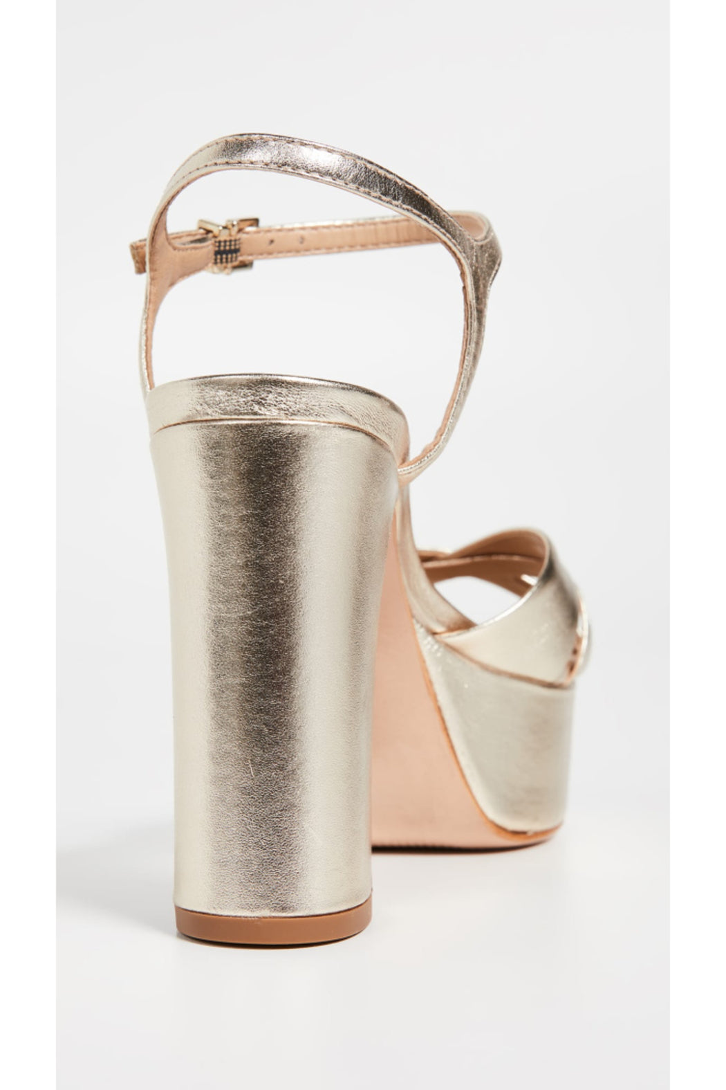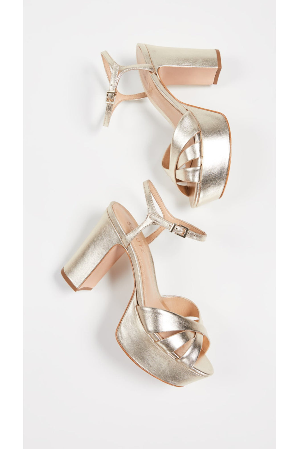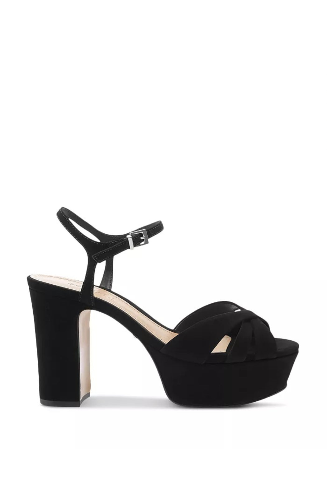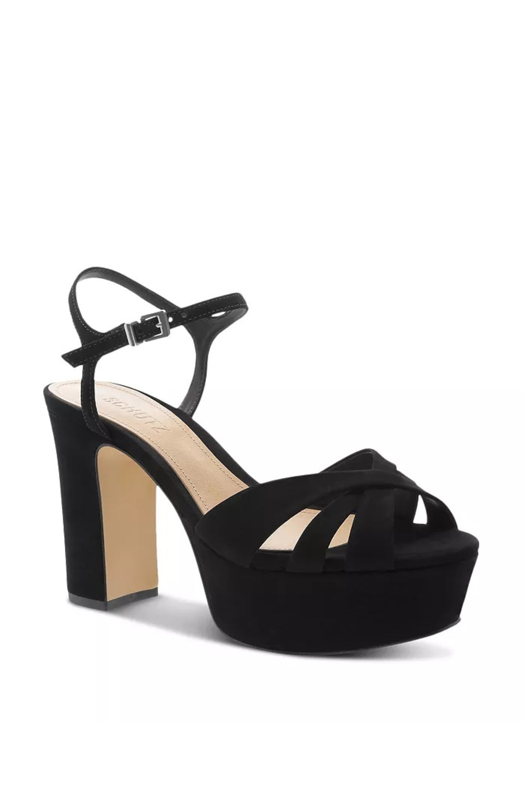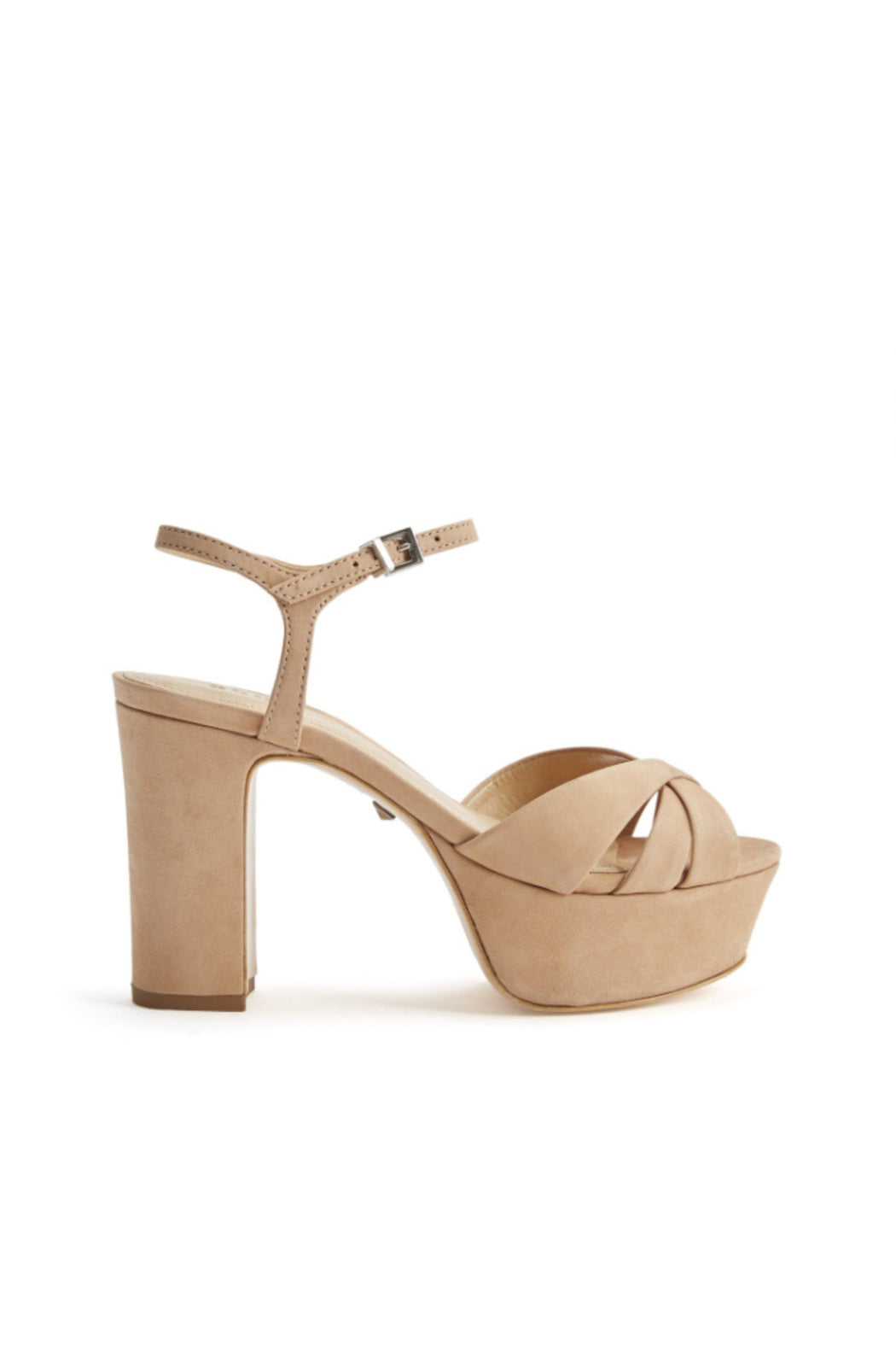 It’s all about disco glamour when it comes to the Keefa Sandal. Step out in style in this chunky high-heeled platform silhouette. Nubuck leather elevates this soaring shoe's statement shape. Featuring a crisscross band across the toe, this day to night sandal adds a chic impact to your dressed-up looks. This style is excluded from all promotions. Material: Nubuck Leather Heel Height: 4.1 in | 105 mm Platform: 1.5 in Strappy platform silhouette Chunky heel Buckle at ankle Open toe Rubber heel patch at leather sole Style: S2034600030086 (Honey Beige)