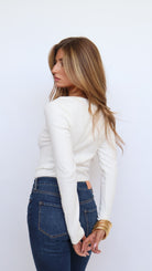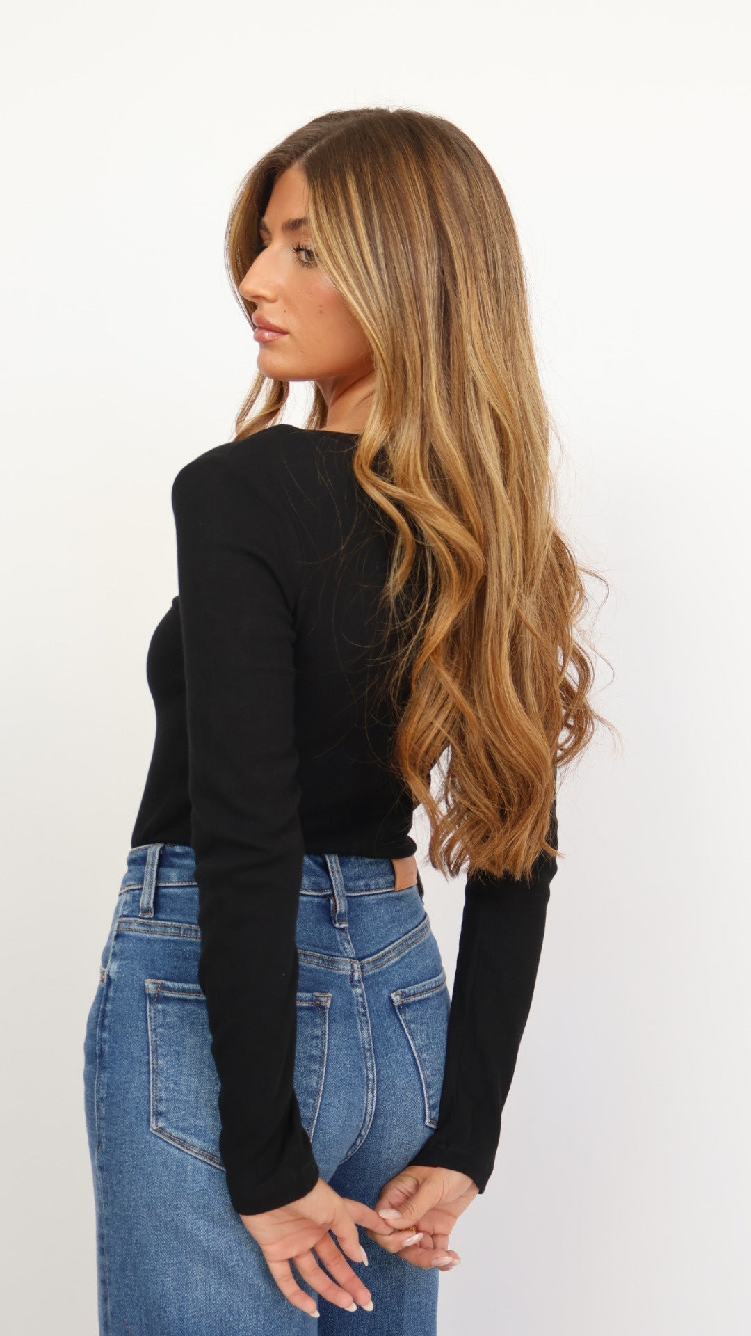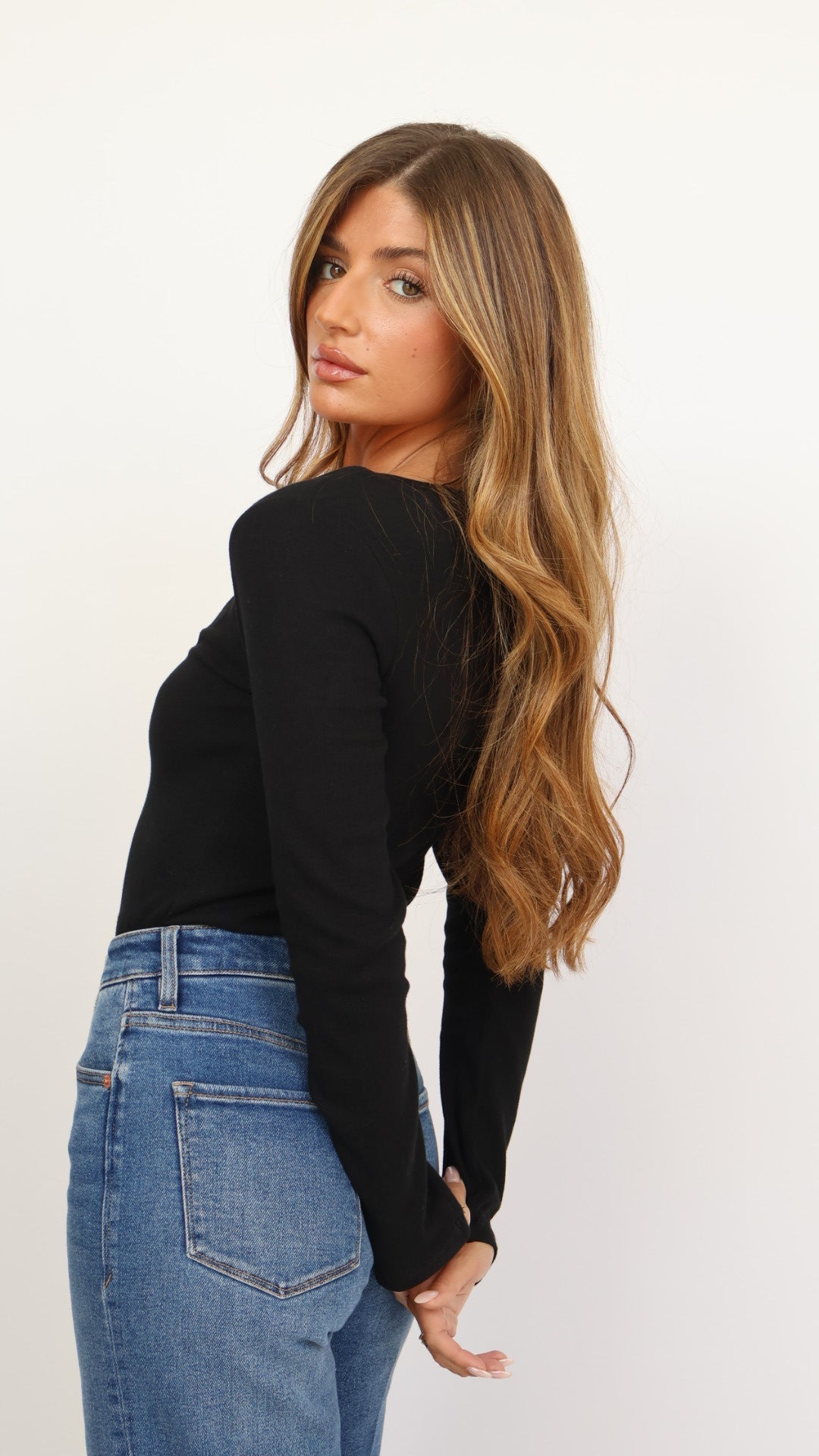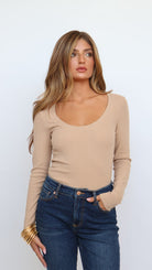 Introducing your new wardrobe hero: The Day to Night ribbed long sleeve top. Say goodbye to those "what to wear" moments because this top pairs with everything. From lounging in sweats to stepping it up with trousers, it effortlessly nails that casual vibe while smoothly transitioning to a flawless night time look. And let's talk about fit - it's like a warm hug for your curves, gracefully blurring any imperfections while still feeling light and breathable.