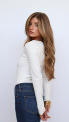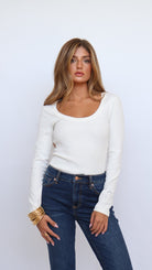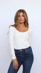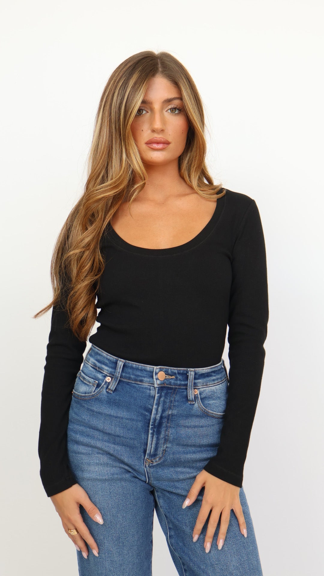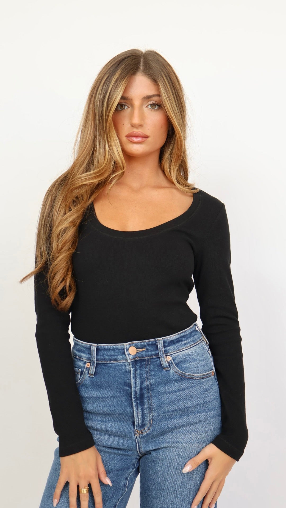 Ribbed Cotton Scoop Neck Long Sleeve Top