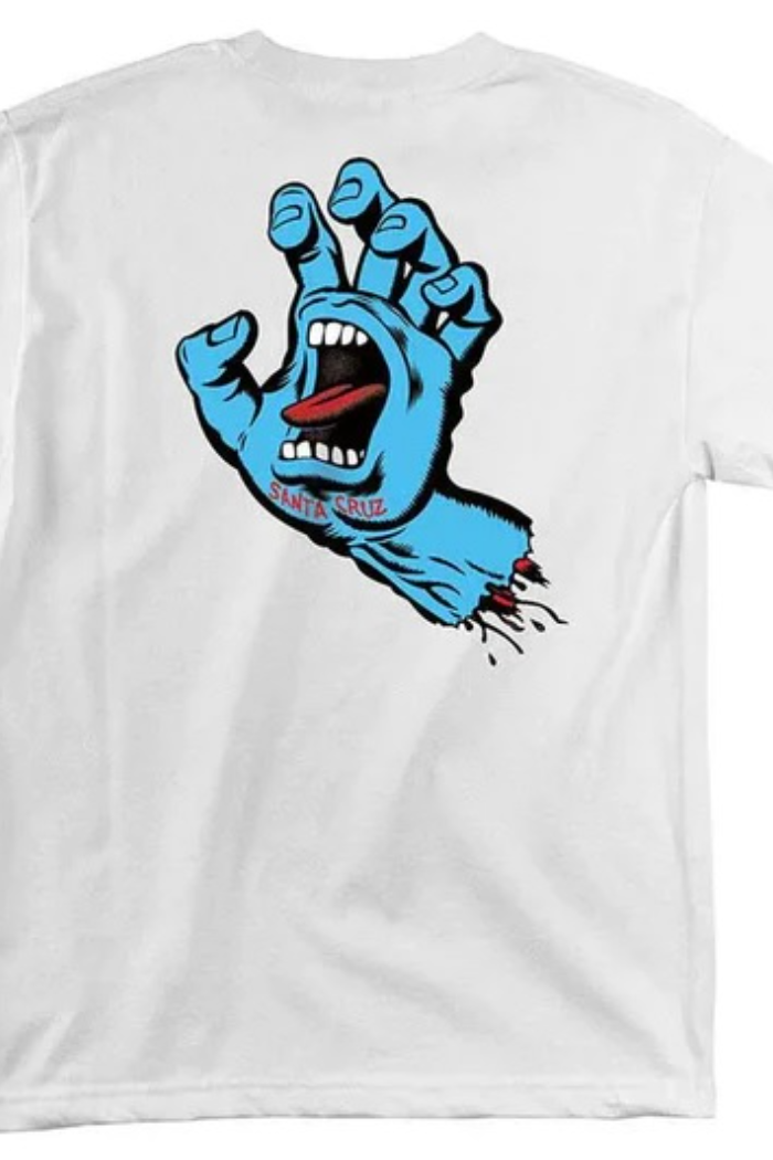 Roll up and stand out in the latest t-shirts and apparel from Santa Cruz Skateboards. The Screaming Hand men's short-sleeve regular fit cotton t-shirt features small front and large back Santa Cruz Screaming Hand logo prints. Artwork by the legendary Jim Phillips. Santa Cruz has been manufacturing the best skateboards and apparel since 1973. Innovative skateboards and artwork from the beginning 'til the end.