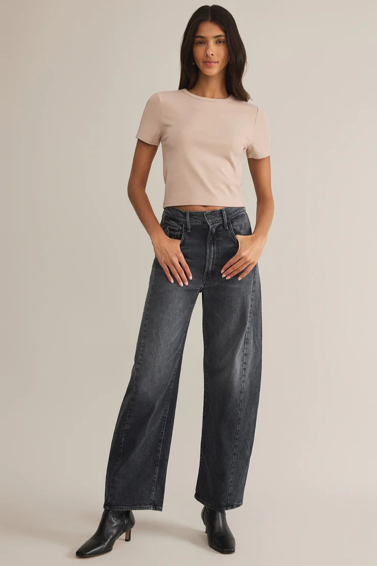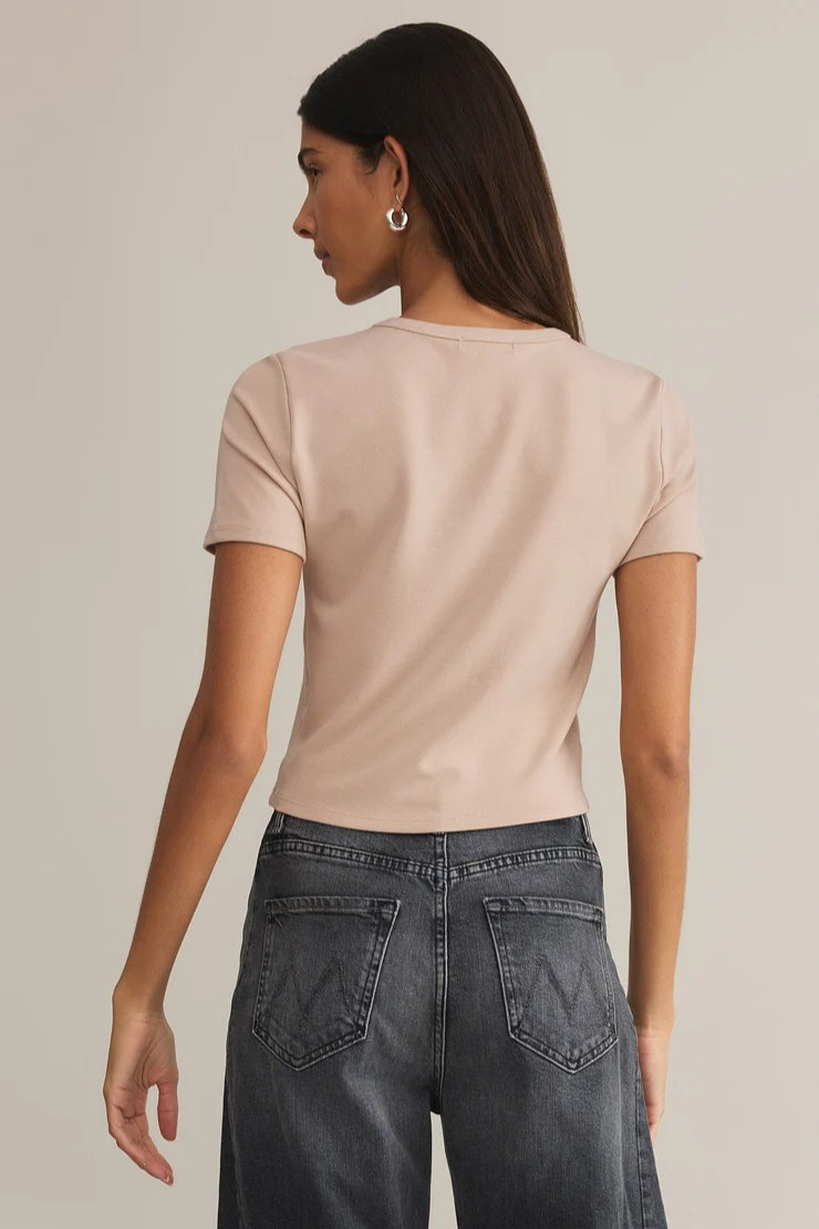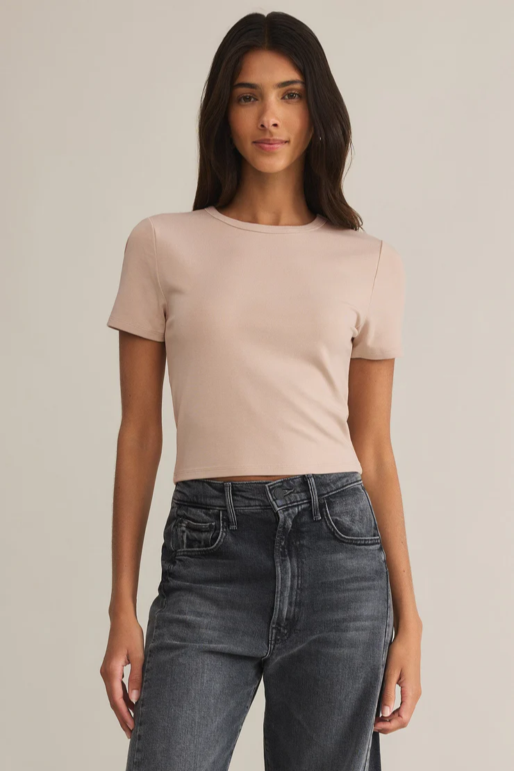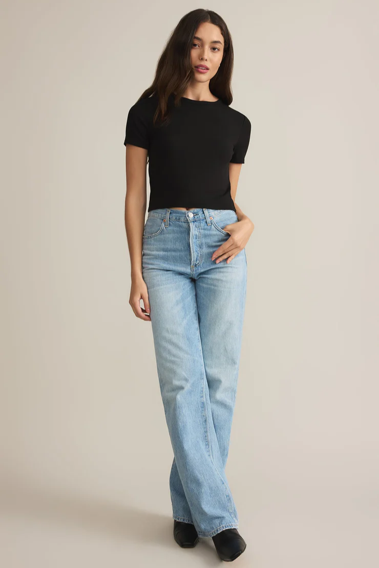 This short-sleeve crewneck top is made with Second Skin Baby Rib fabric, giving it a soft, slightly stretchy feel. Designed to be tucked or worn loose, itβs a staple for layering or wearing alone depending on the occasion.