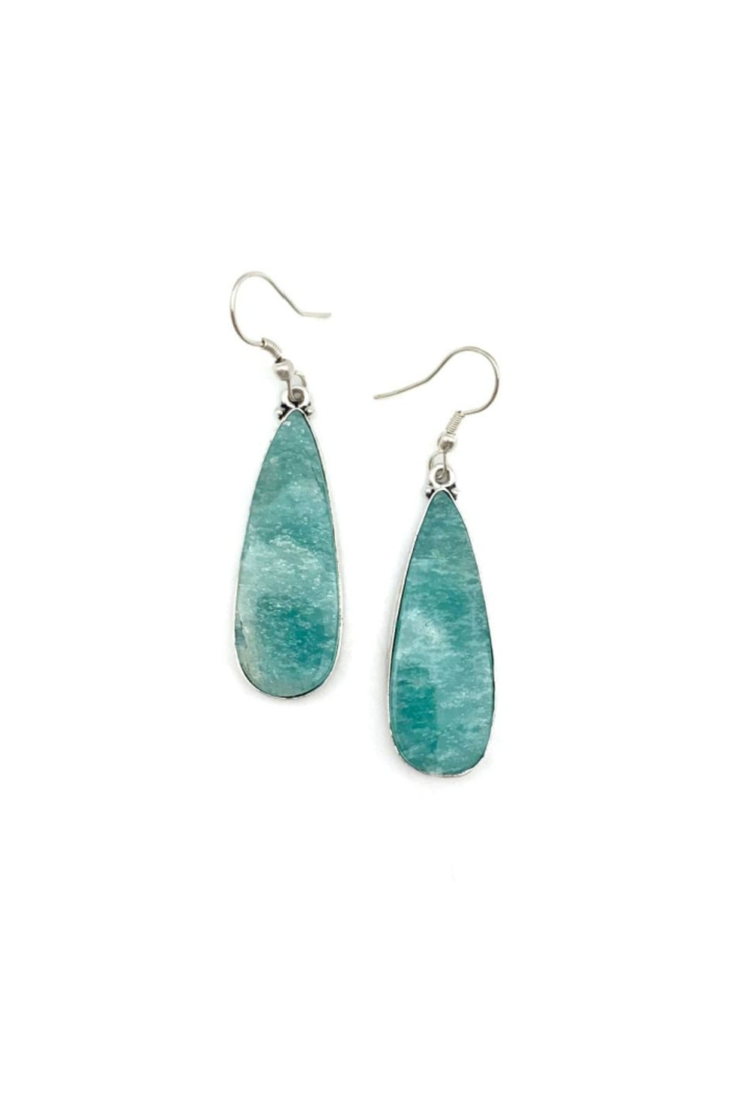 Genuine semi-precious stone jewelry set in silver-plated brass. These are natural stones the color and exact size/shape will have some variance. Wires are nickel free. 2" Drop.