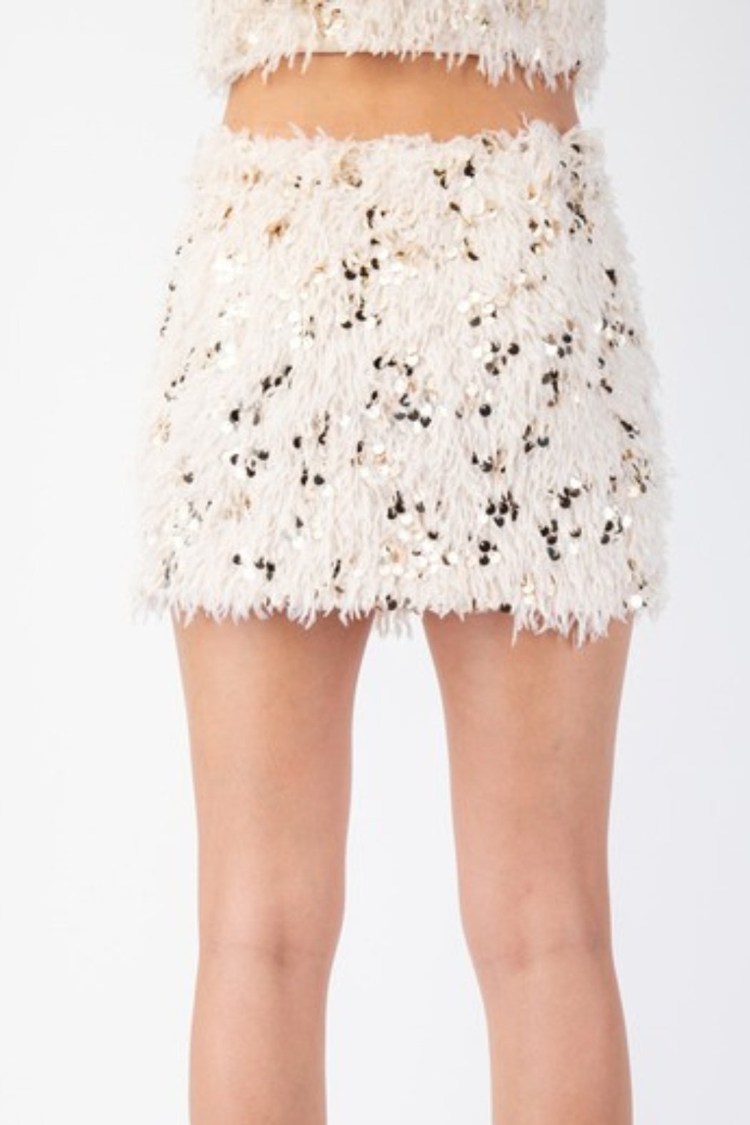 SEQUIN FRINGED KNIT SKIRT WITH FRONT SLIT SET *Fabric Content: 100% POLYESTER Made in China