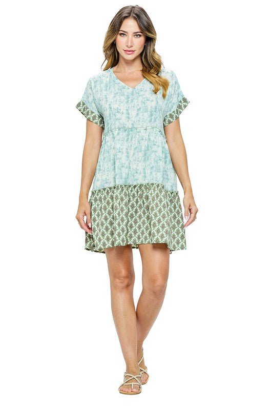 - Boho Casual Look - Comfortable effortless Style - Easy Fit - Tie-Dye Design - Patterned Print - Raffled - V Neck - Short Sleeve - Short Length - 100% Polyester - Made in Nepal Measurements : Chest- SM 42",LXL 46" Length- SM 35", LXL 36" Hem- SM 80", LXL 84"