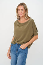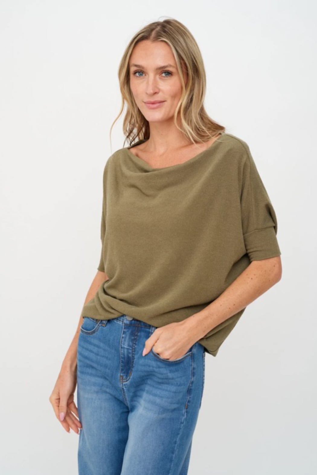 Meet the short sleeve version of our best-selling Anywhere Top—designed for effortless style no matter the season. Lightweight, flattering, and easy to wear, with a collar you can style three ways—cowl, off one shoulder, or off both—this is the top you’ll reach for again and again.