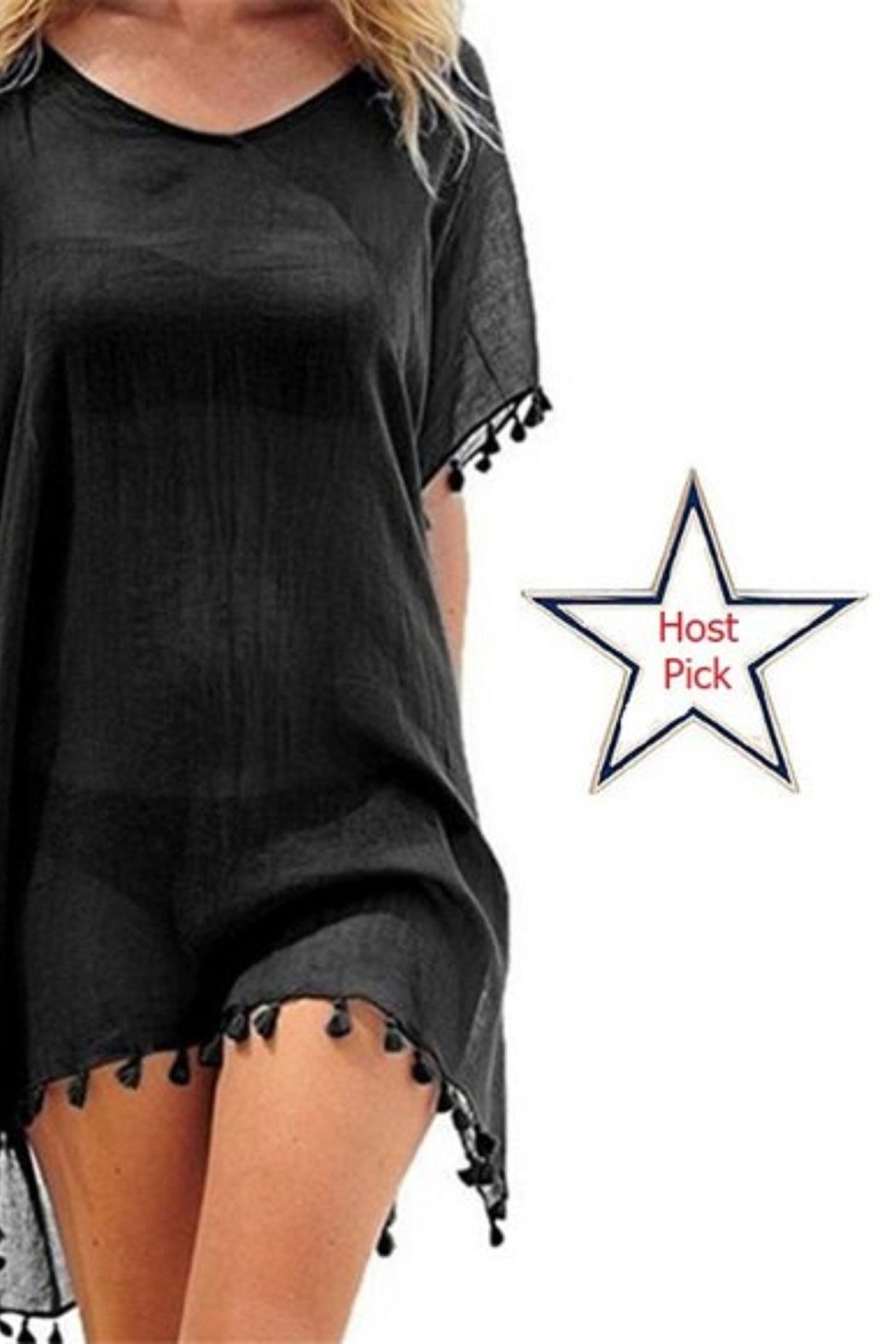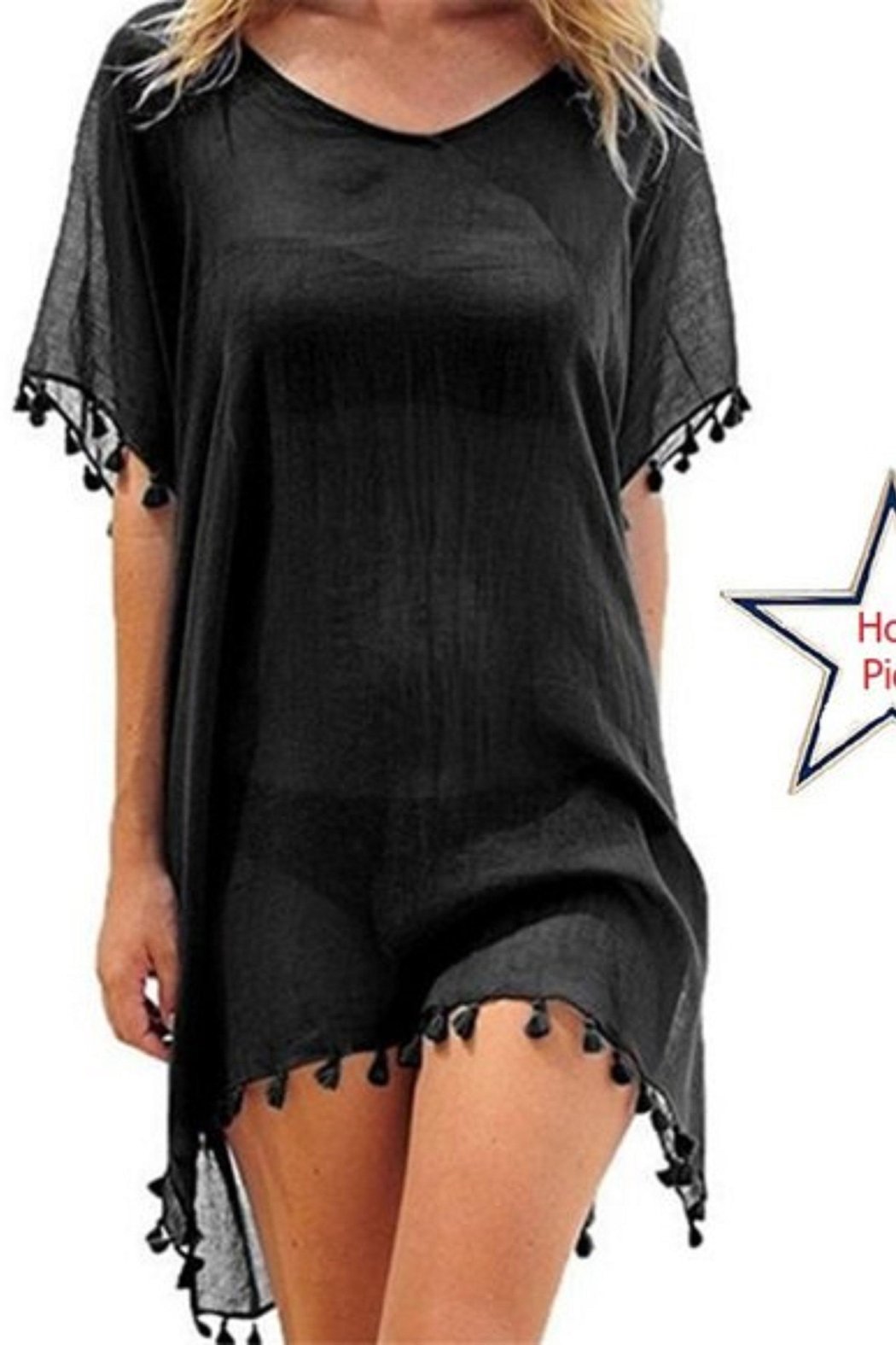 Short Summer Black Beach Dress Bikini Cover Up Thigh Length