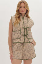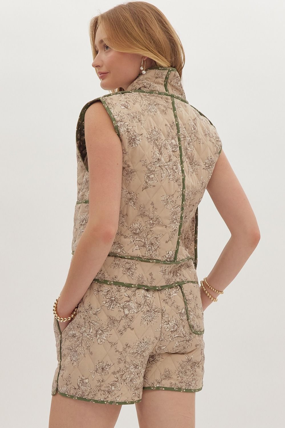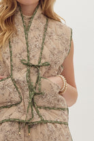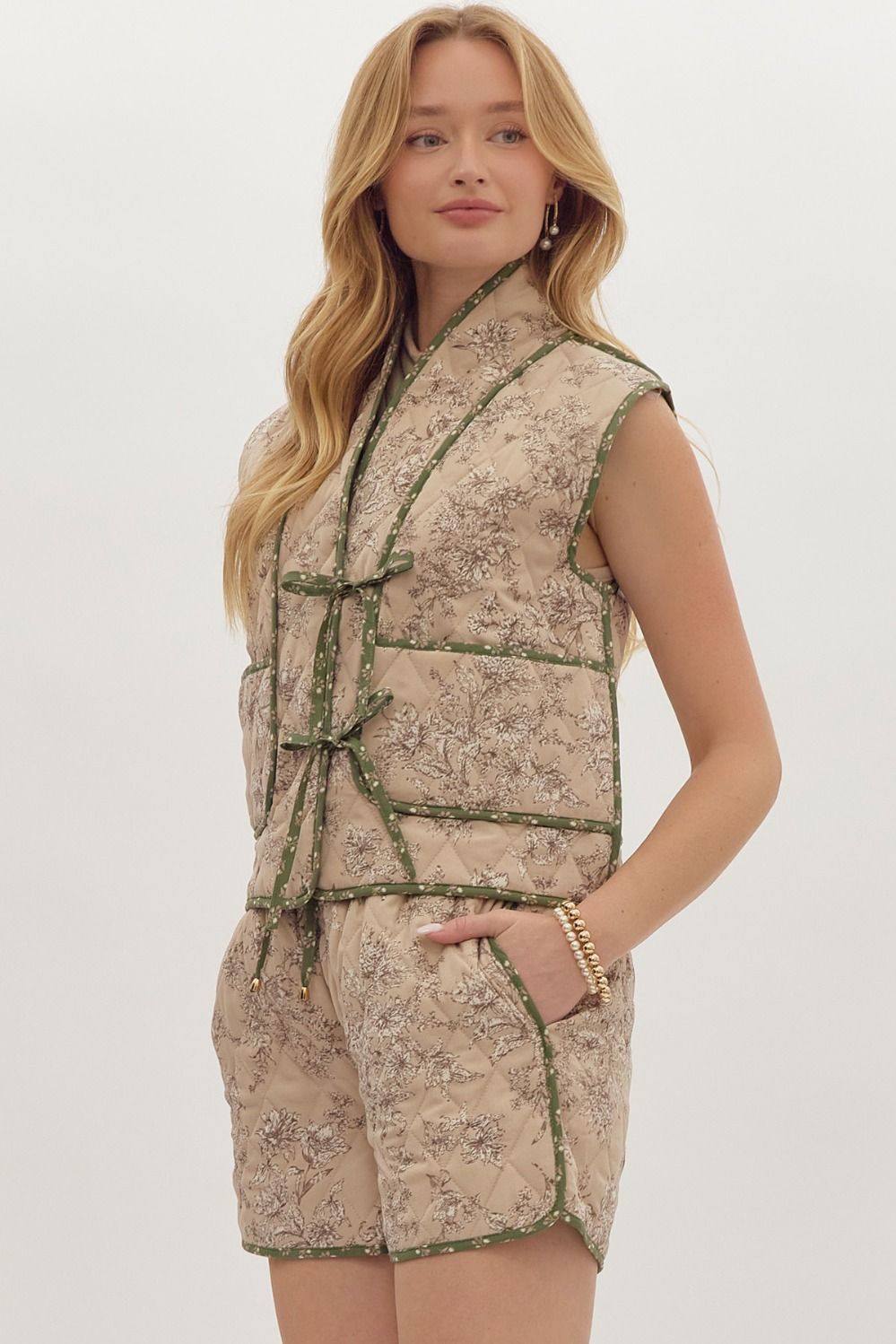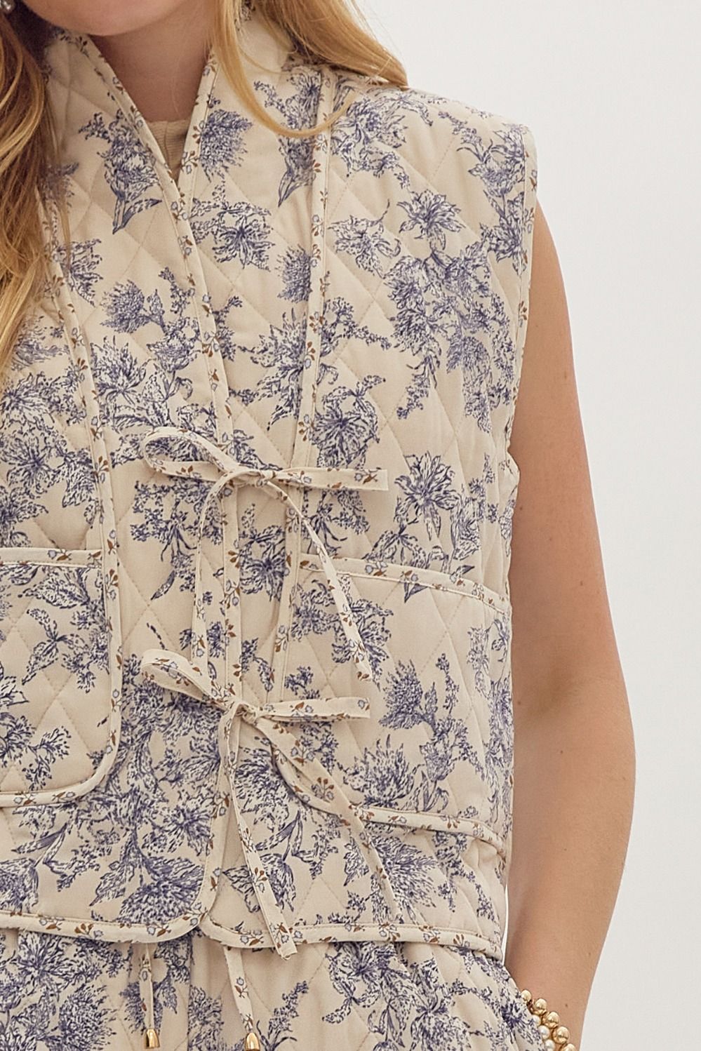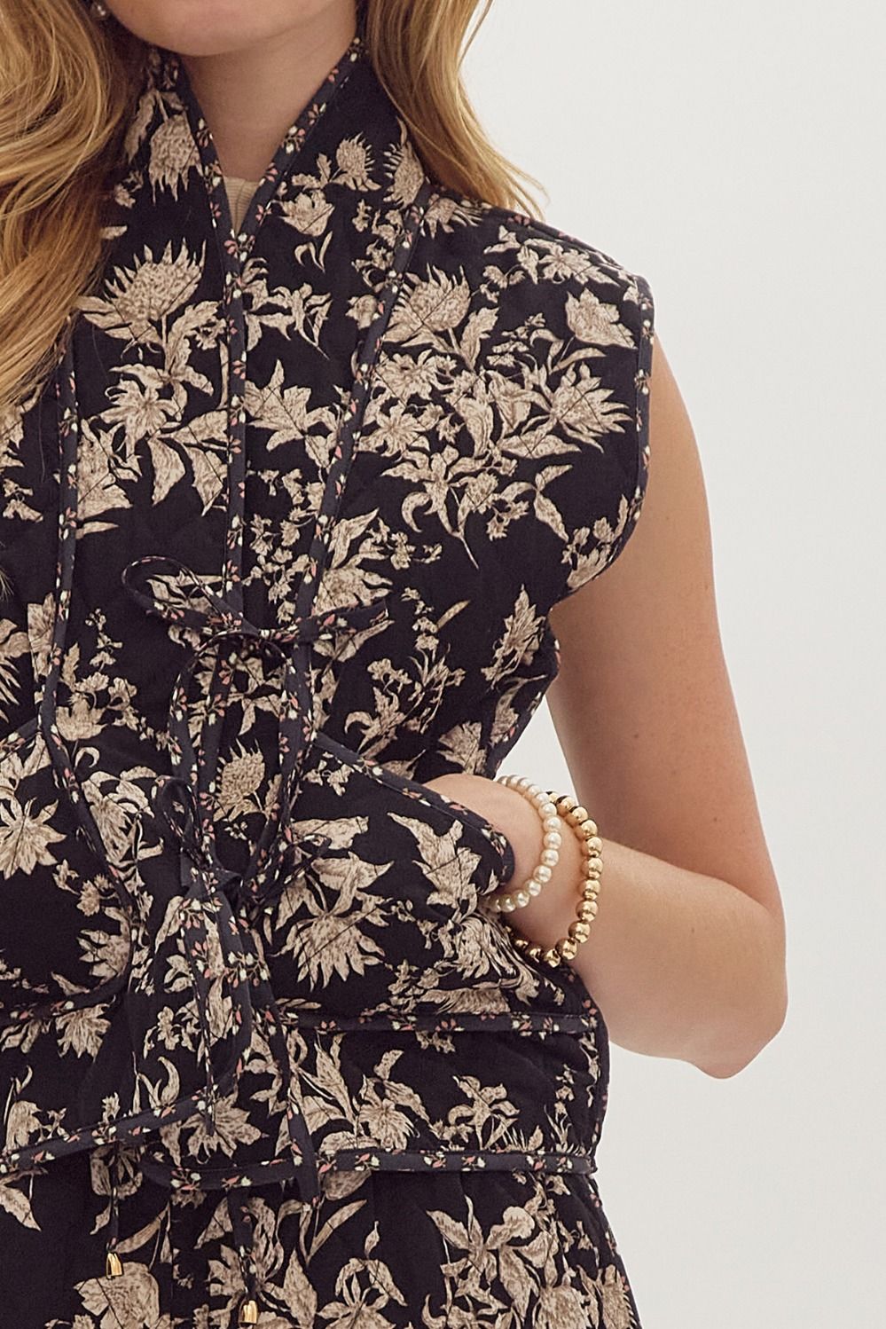 Take a stroll in our Show Me The Way Floral Quilted Vest! This vibrant vest features a unique floral print, perfect for adding a pop of color to any outfit. With its lightweight and non-stretch fabric, it's both functional and stylish. Plus, the contrast interior, functional pockets, and self-tie front closure make it a versatile and trendy addition to your wardrobe.