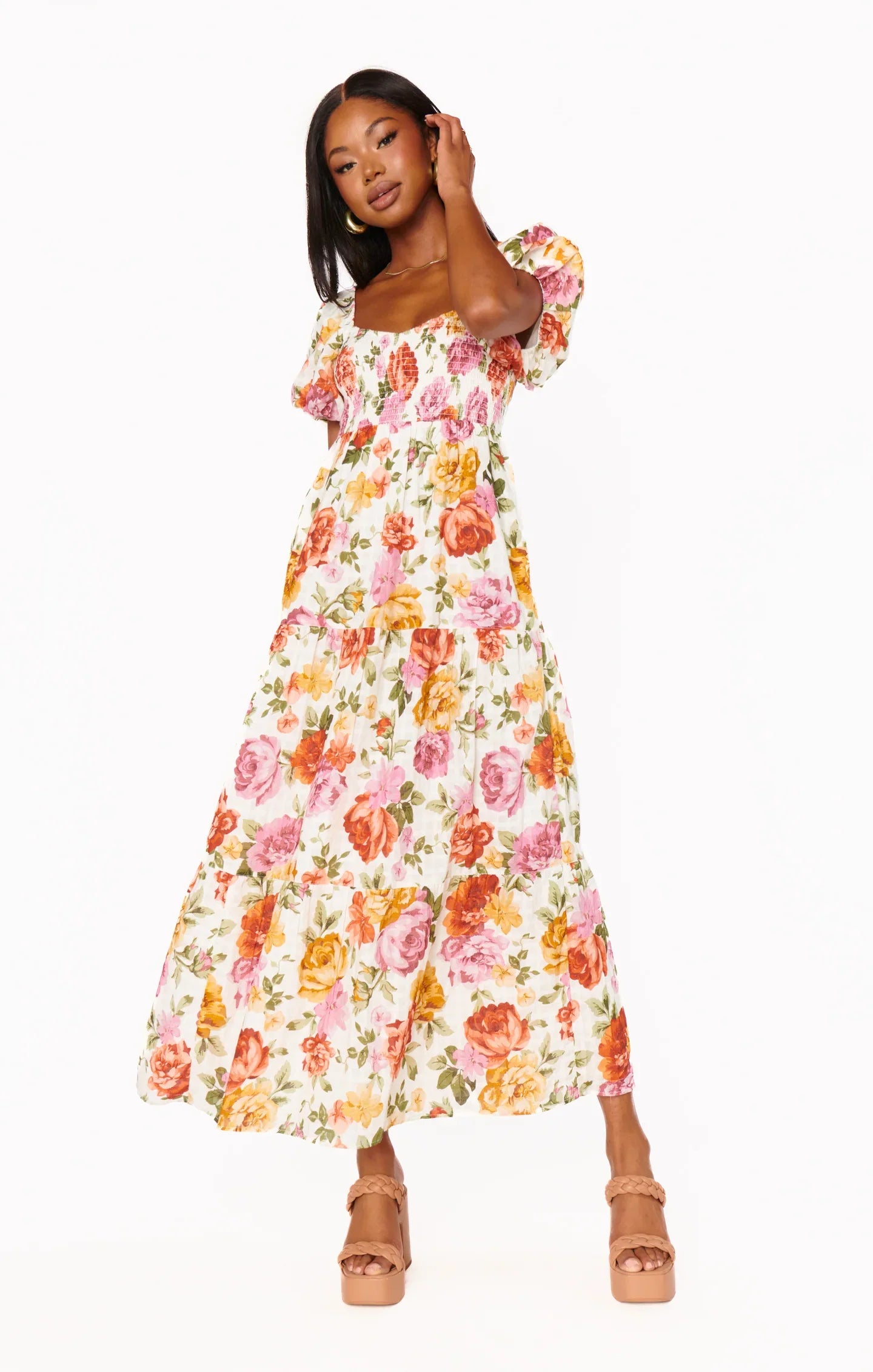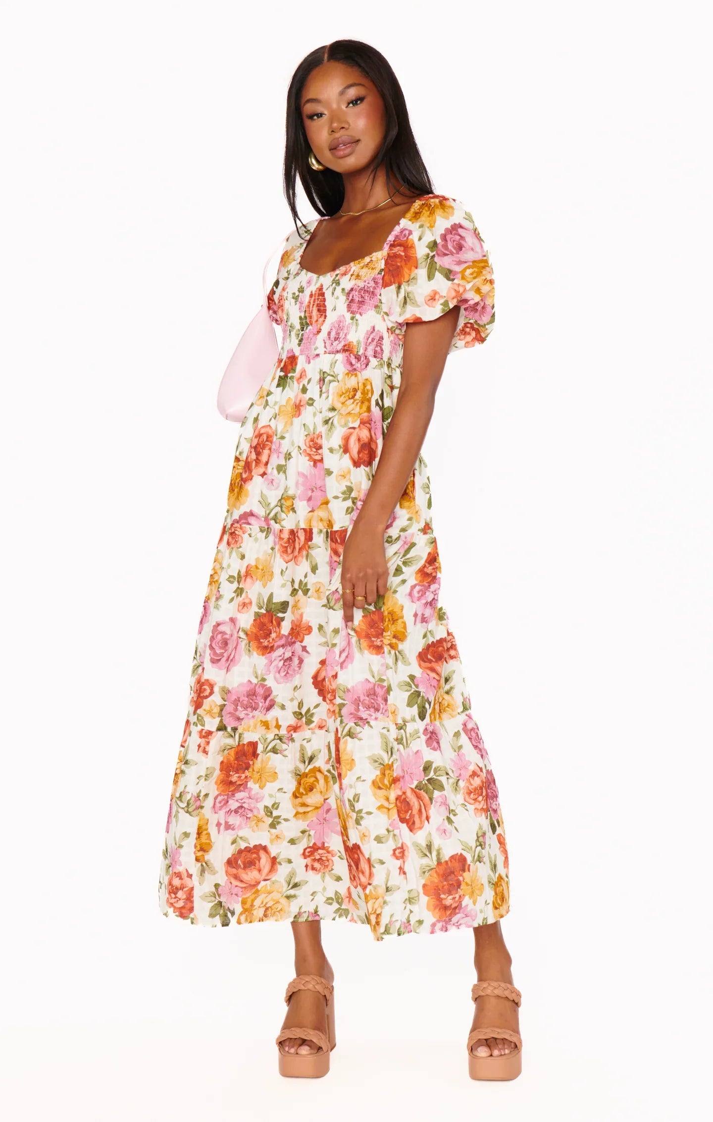 Say hello to your new favorite maxi dress! Made from lightweight, flowy fabric, it’s perfect for brunch dates and garden parties. With on-trend puff sleeves, a comfy smocked back, and a romantic floral print, this dress has it all. Just add cute sandals and a sun hat, and you're all set for a dreamy picnic in the park!