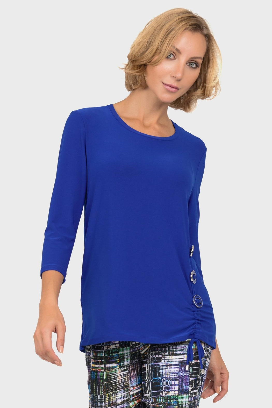 A great color and great go-to top featuring 3/4 sleeves and classy side cinch button deals. Wash in cold water.