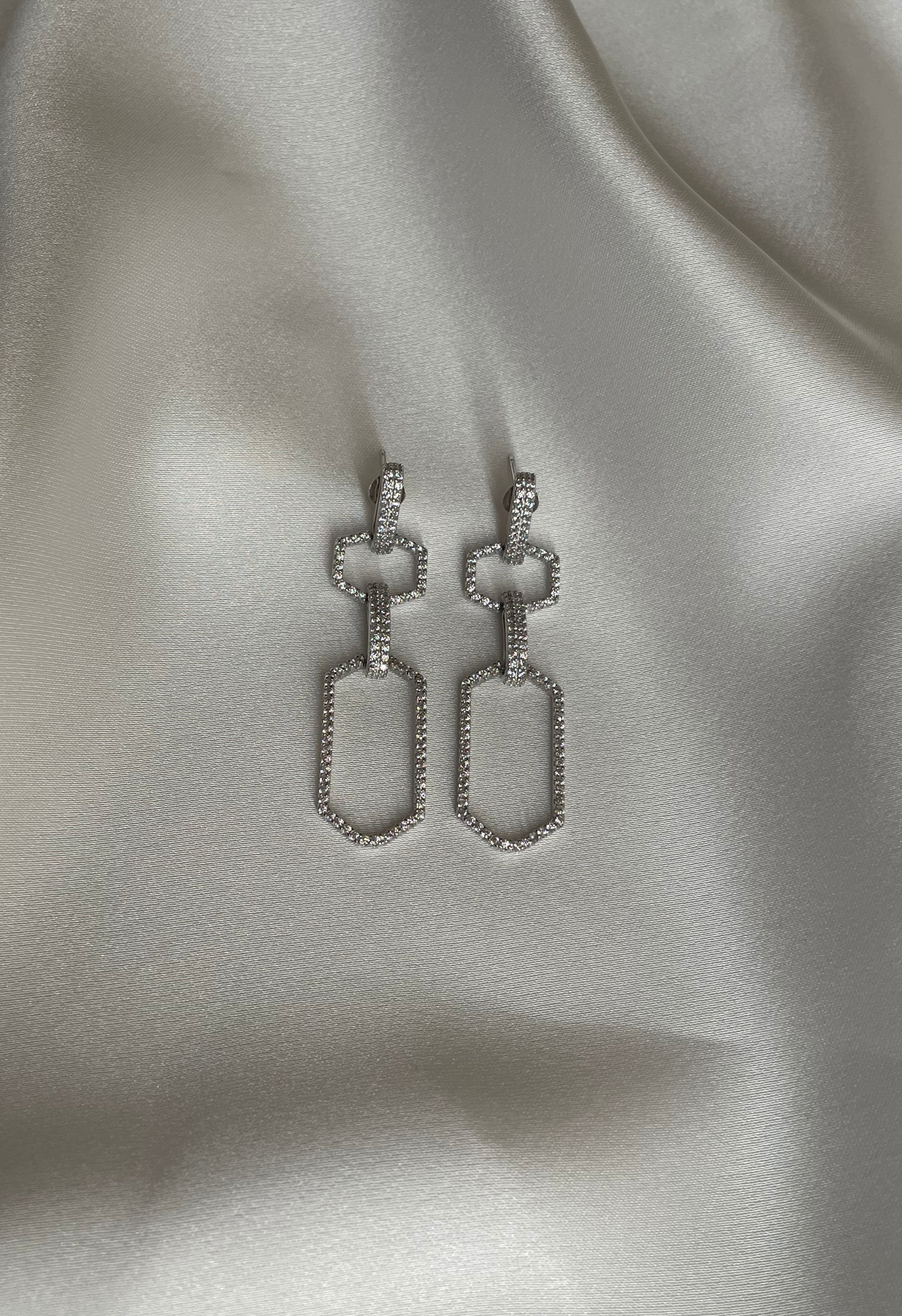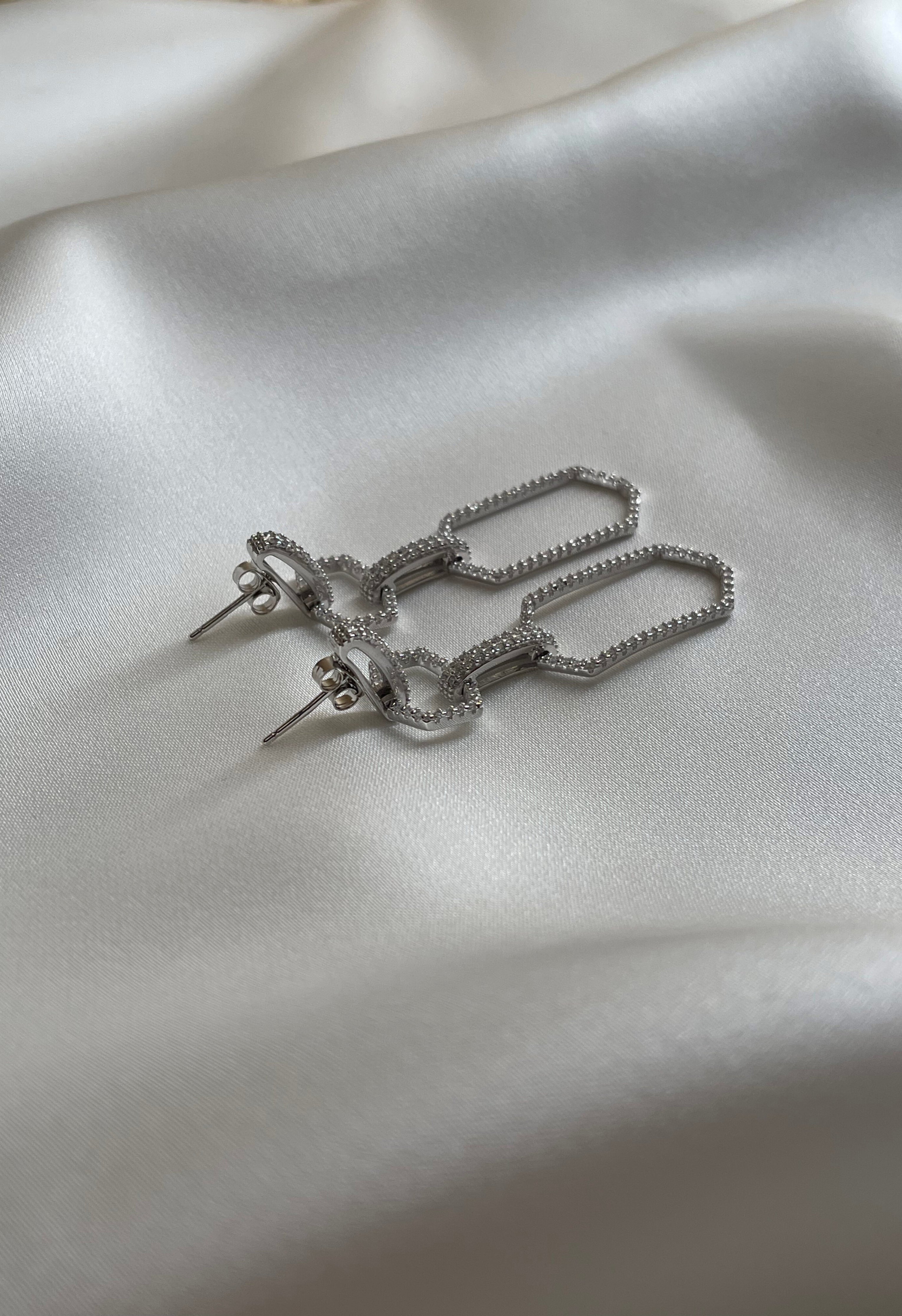 Silver Dangle Crystal Linked Earrings