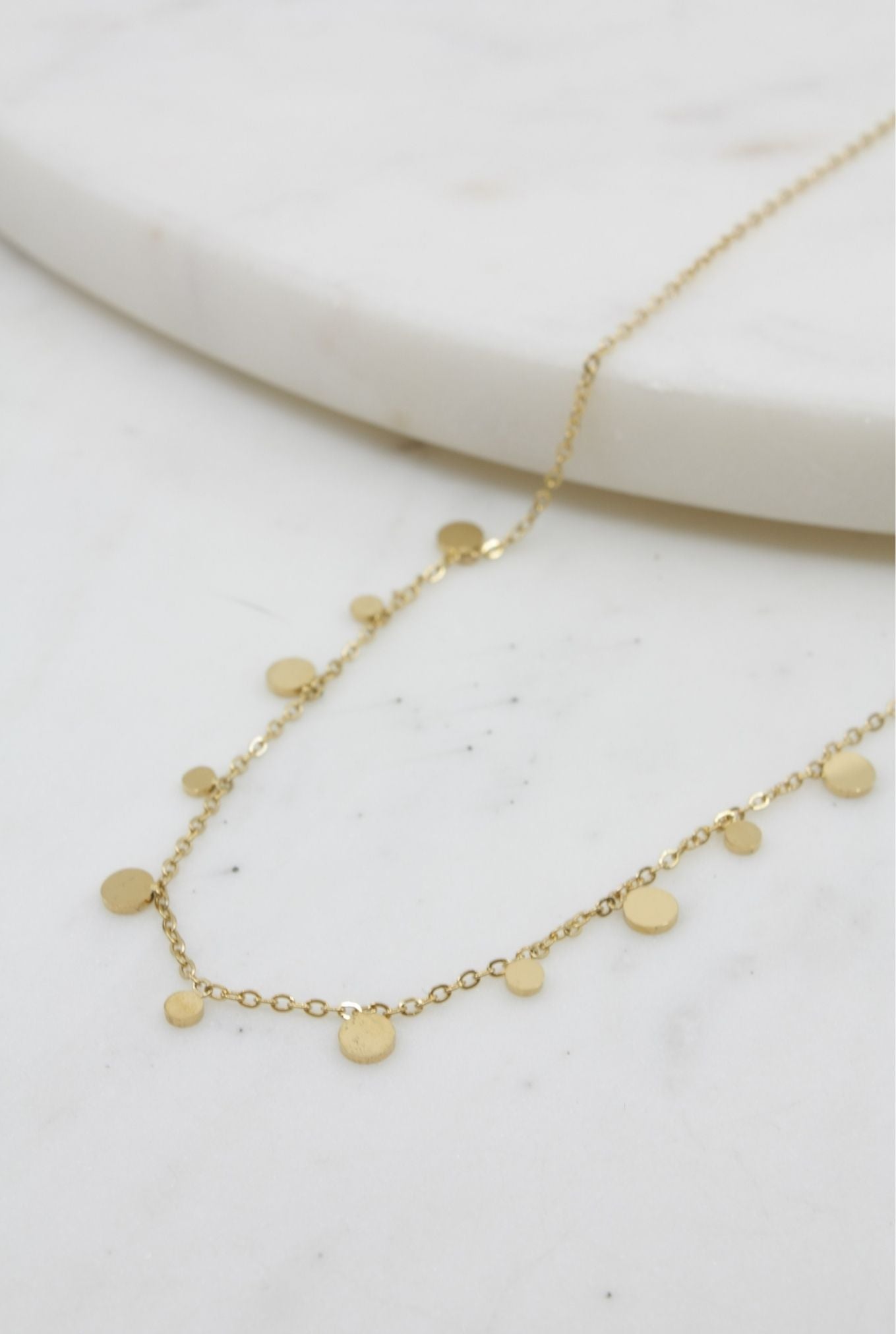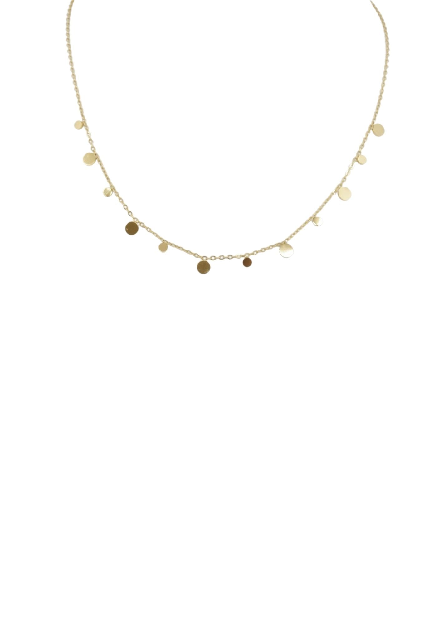 A gold chain necklace with cute small circle pendants to compliment any outfit.
