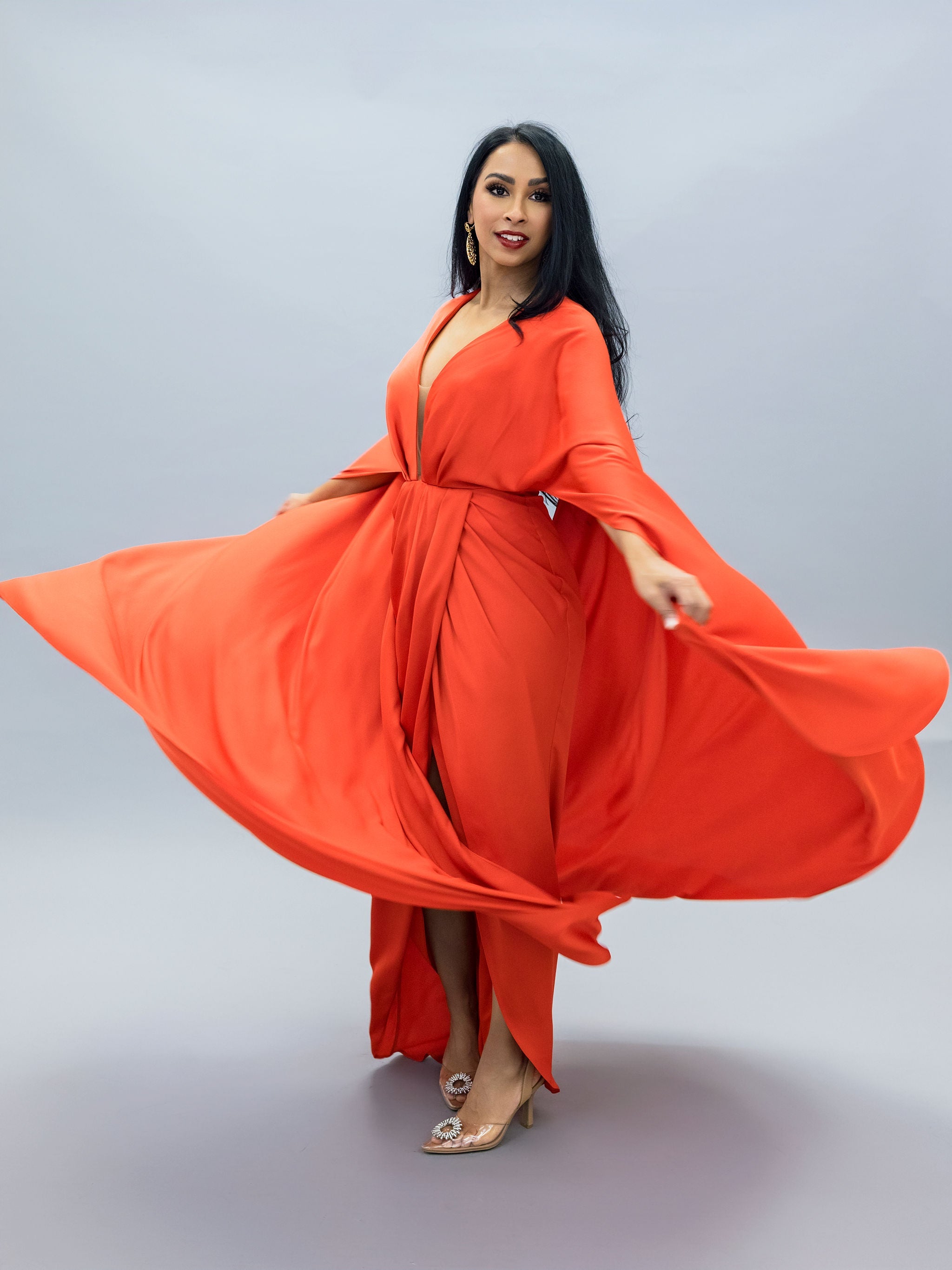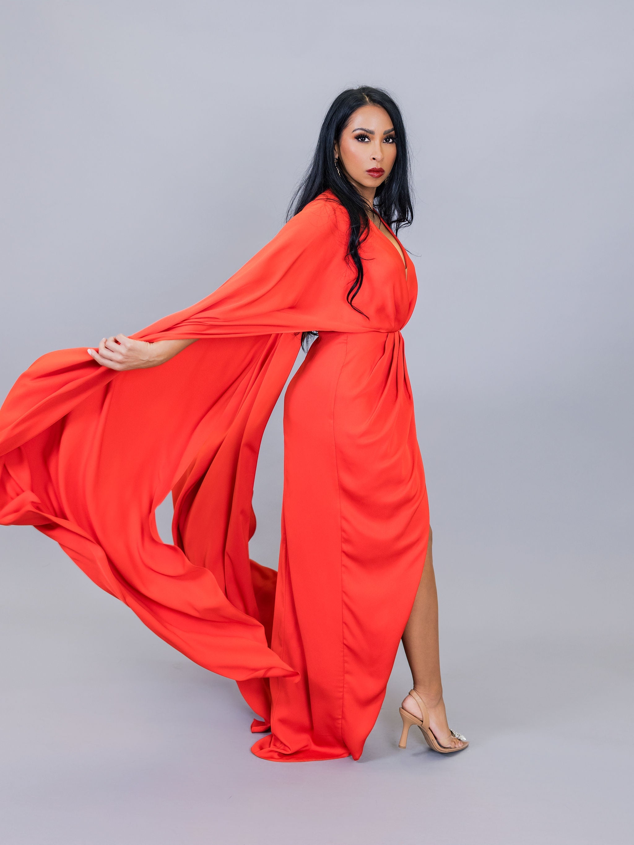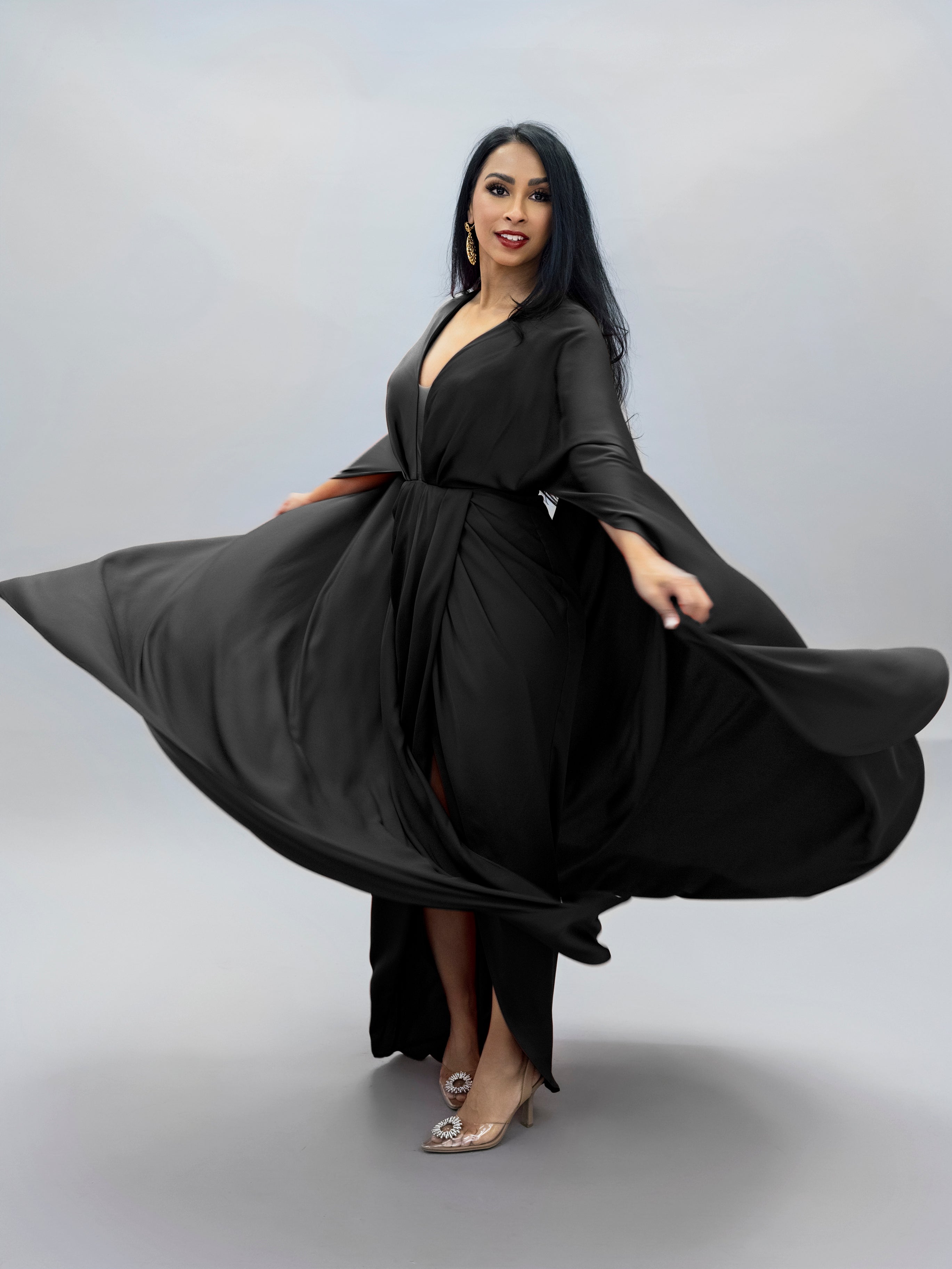 Introducing the Siyah dress – a cape style evening dress with a deep neckline and pleats at the waist for a sophisticated look. Crafted with quality materials, this beautiful piece is designed to last for special occasions.