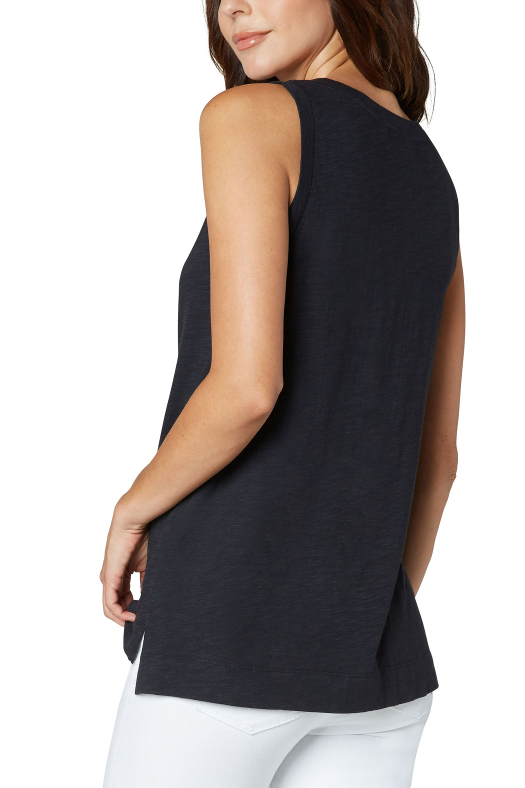 Our essential v-neck slub muscle tee is perfect for layering or on it's own! This silhouette features a high-low hem with side slits. Super easy to wear and is a timeless classic. No-brainer!