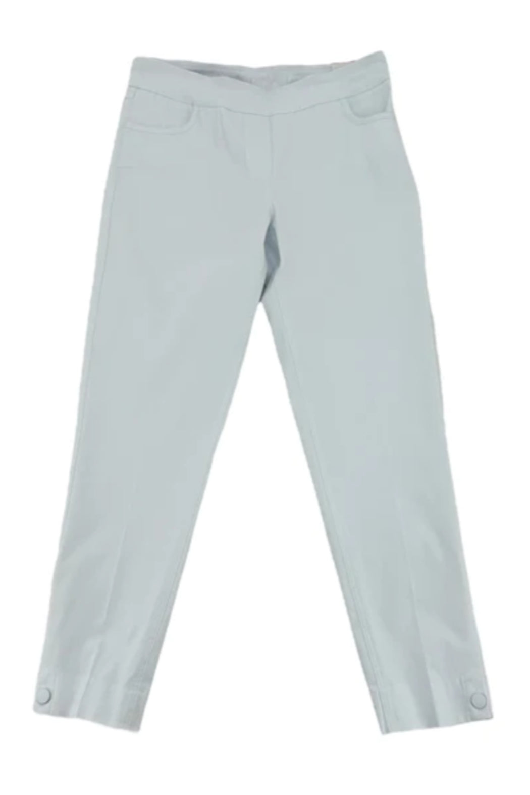 A tone on tone button adds a cute detail to the ankle of these soft SlimSation pants. The hidden tummy control panel gives the illusion of being 10 pounds lighter. Shallow pockets in the front are made of mesh to prevent bulging. These black pants look fabulous with any top. Come in black only.