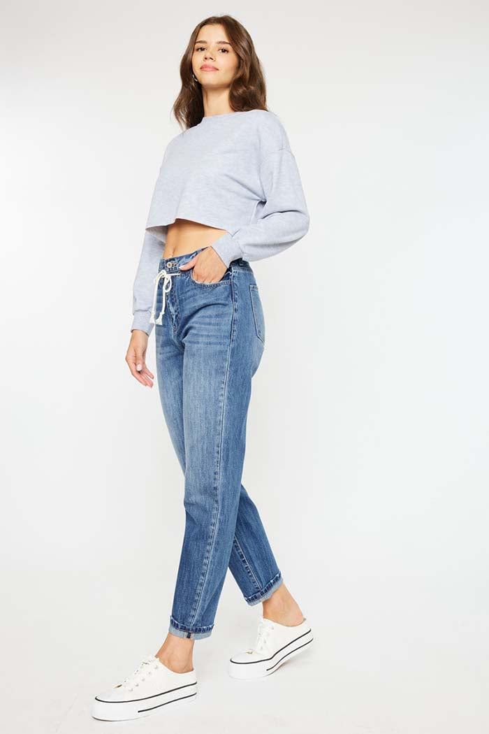 11.25" rise, after 1.5" fold 27" inseam in size 5