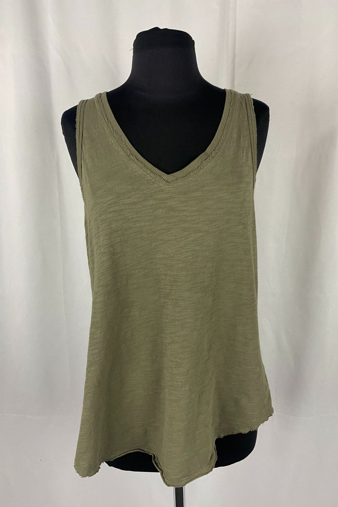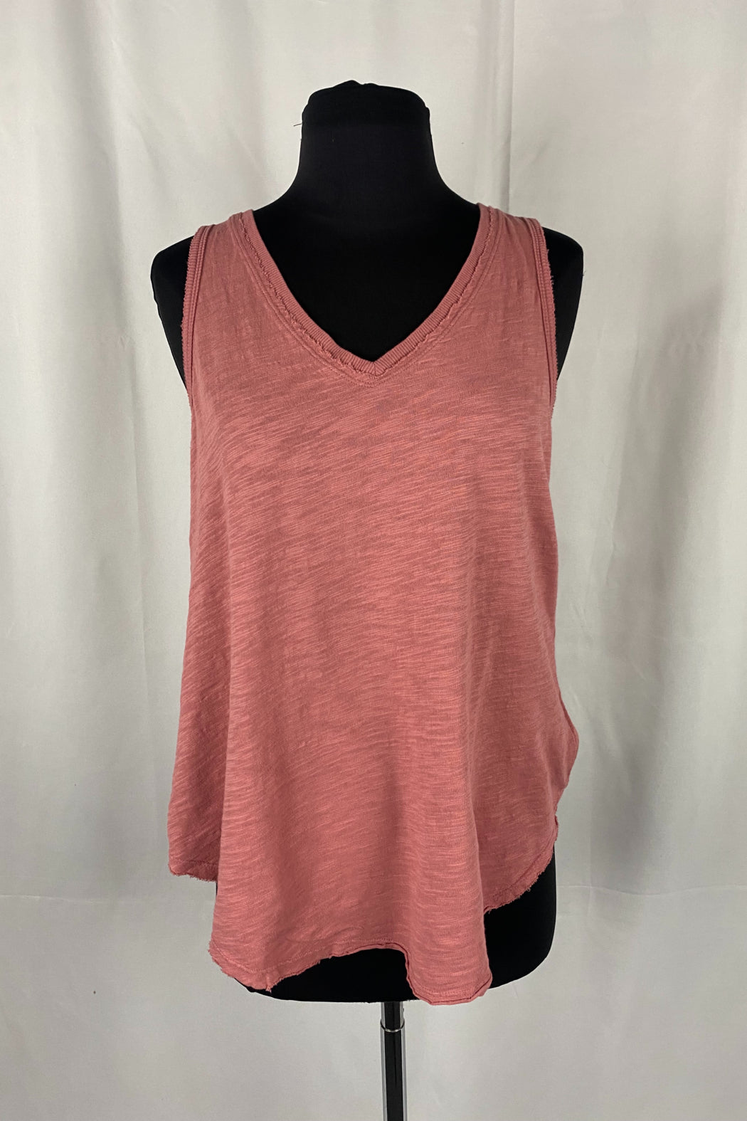Easy, Lightweight tank with deep V and raw edges.