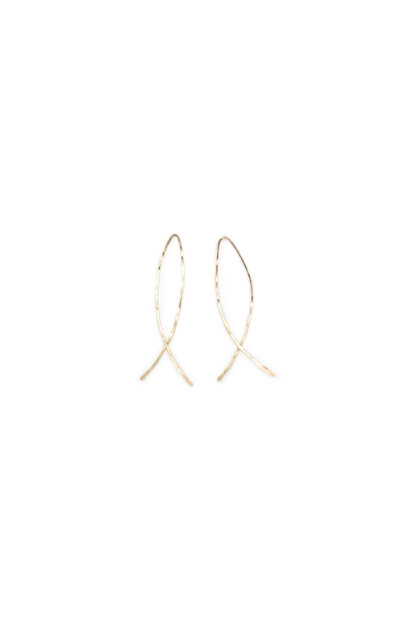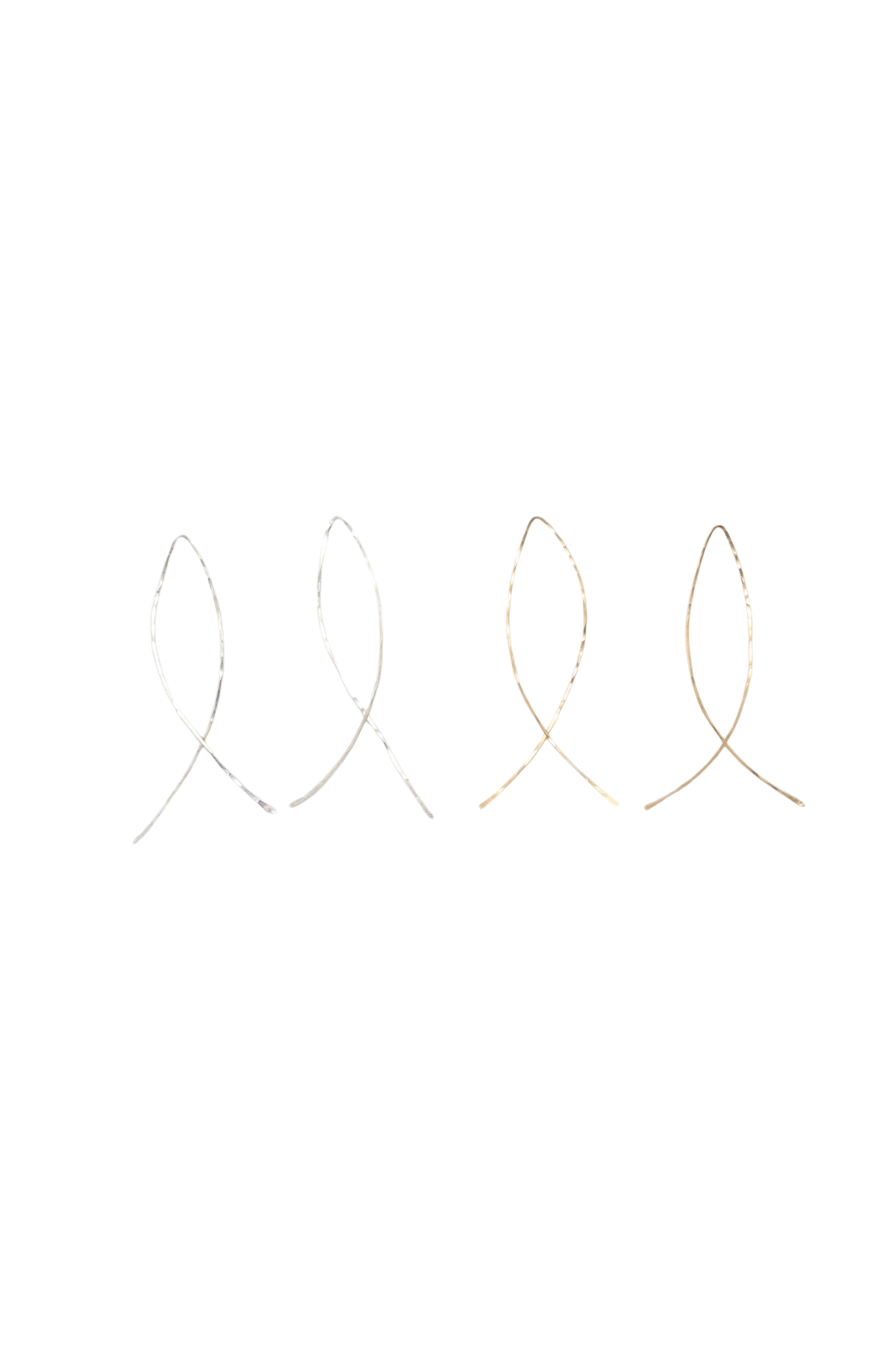Simple wire earring available in 14k gold fill, sterling silver, gold or silver copper wire, in the shape of a fishtail. This earring is lightweight and made with the standard size of an earring wire.