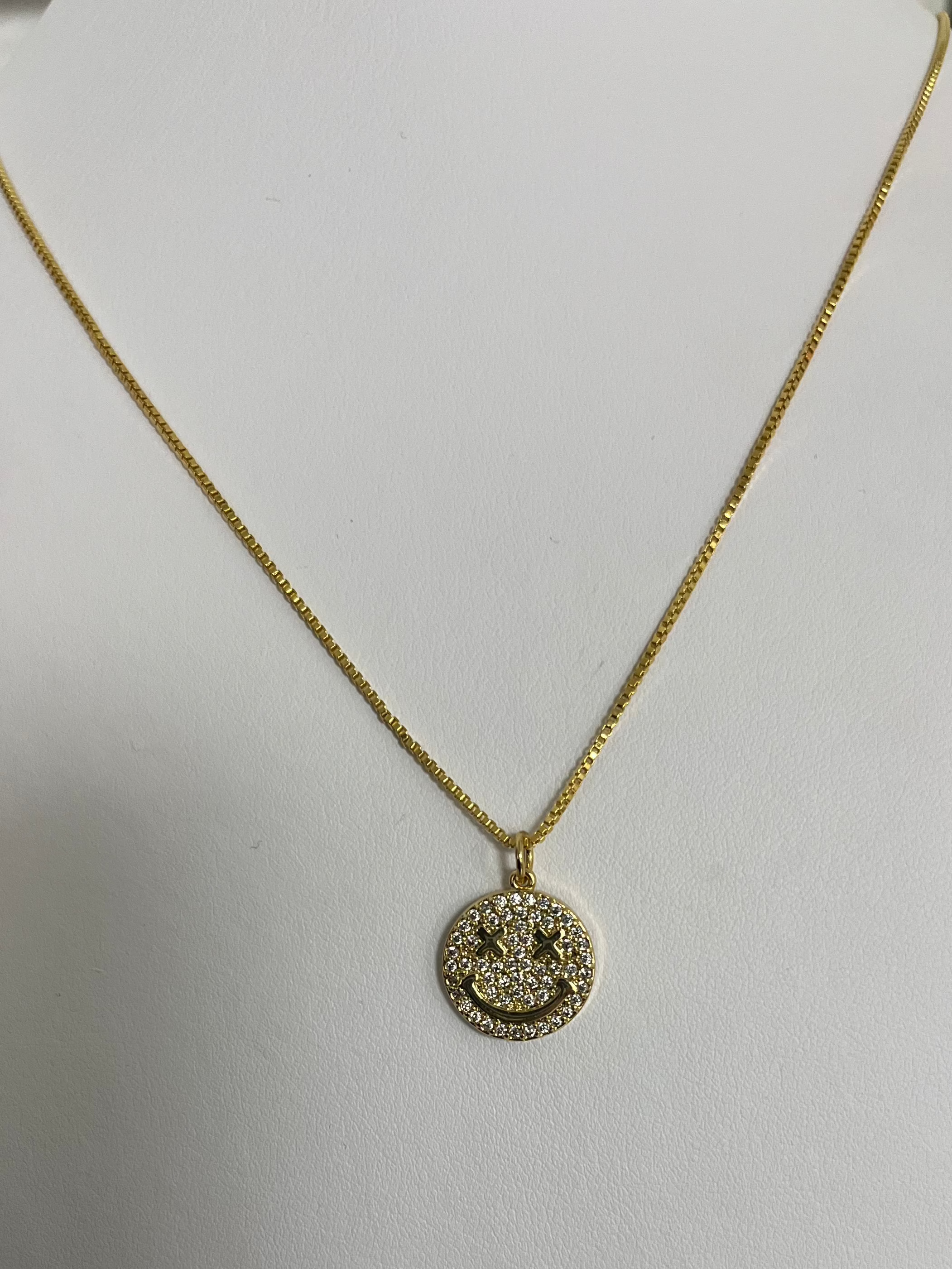 This Smiley Pave Pendant Necklace is the perfect accessory for spreading joy wherever you go. Made of 18k gold plated stainless steel, this necklace features a fun smiley design and is zinc free, swim and shower stain resistant. Add some playfulness to your style with this quirky necklace!