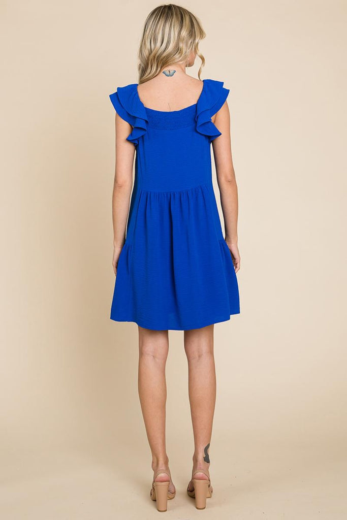 Features: Smocked, Ruffle Sleeve, Tiered, Pleated, Round Neck, Off the shoulder, Knee Length