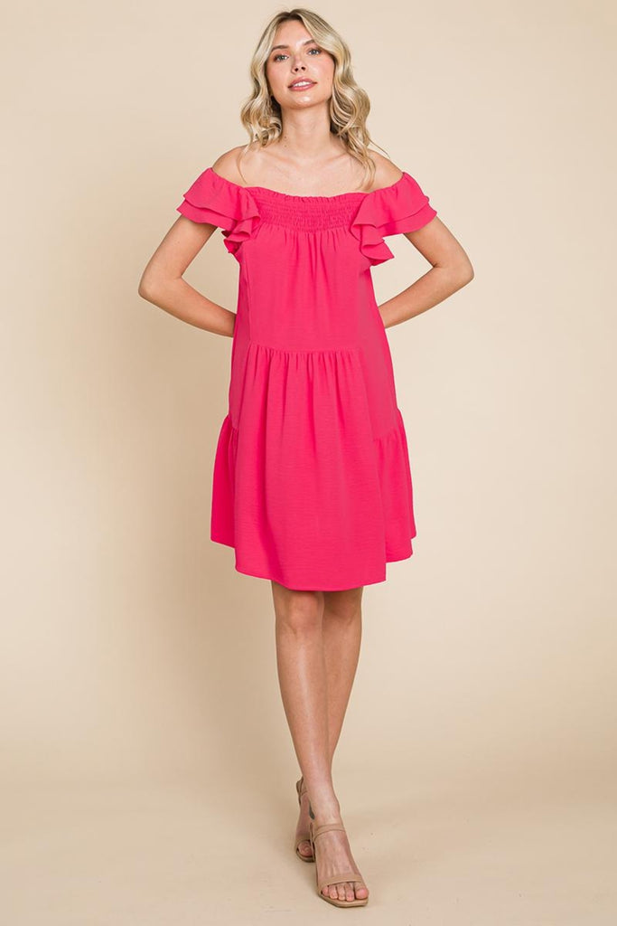 Smocked Ruffle Sleeve Off Shoulder Dress
